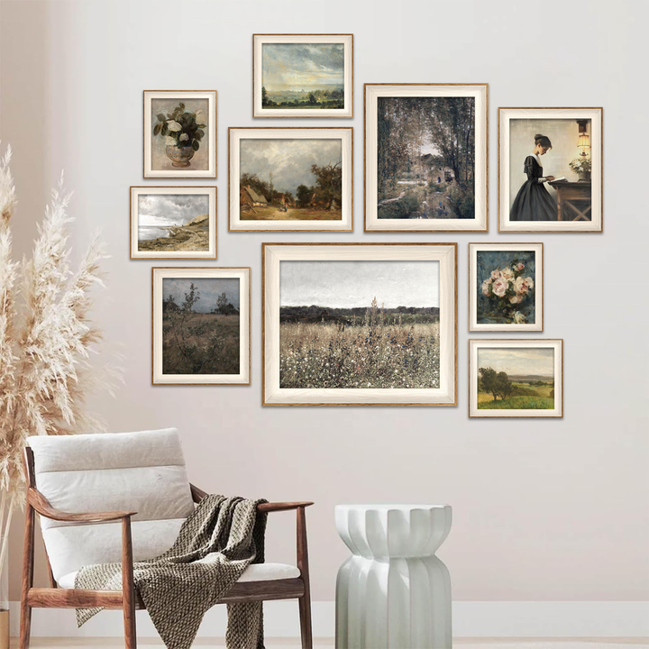 Impresiones en Lienzo con Marco Vintage, Arte de Paisaje Rural, Pintura al Óleo sobre Lienzo, Imagen Retro de Campo de Flores Silvestres, Decoración de Pared para Casa de Campo