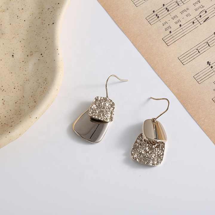 Pendientes de latón chapados en oro de 14k con diseño geométrico vintage en contraste, color café claro, con gancho, de aleación, modernos, para mujer