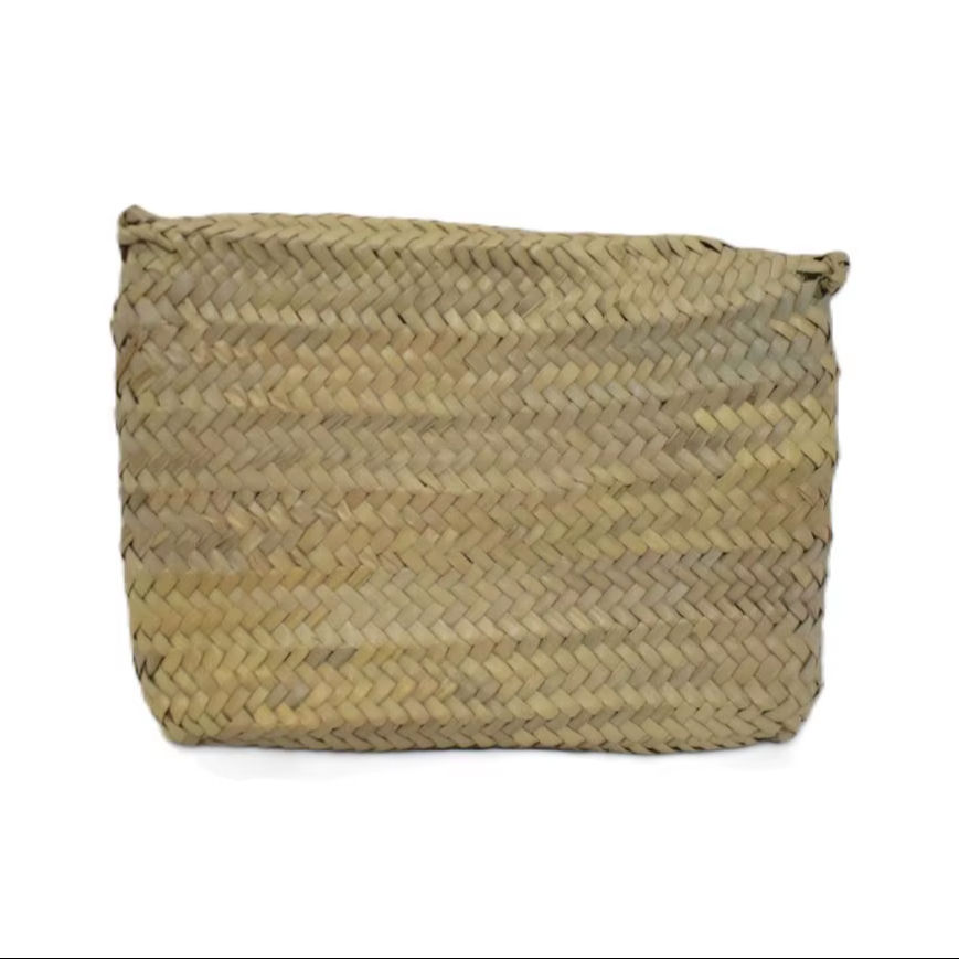 Bolso de mano estilo cruzado de playa de verano para niñas vintage, cierre abierto informal con forro de paja y dos correas