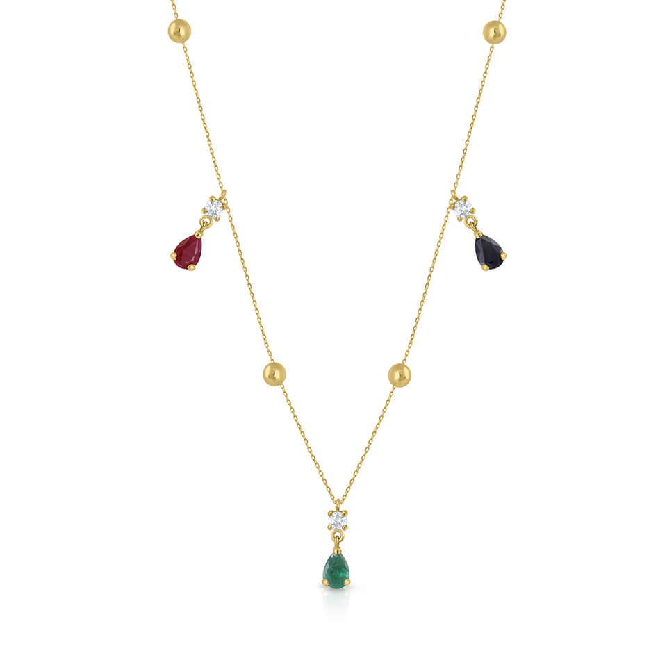 Vintage Oro Natural Esmeralda Rubí Zafiro 18K Rosa Blanca 18K Oro Con Diamante Perla Para Compromiso Cadenas Vintage
