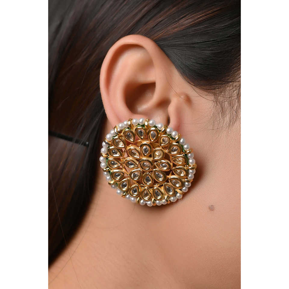 Conjunto de pendientes de Gargantilla Kundan de perlas chapadas en rodio dorado Vintage con patrón de forma de hoja diamante Esmeralda para regalo de fiesta de boda