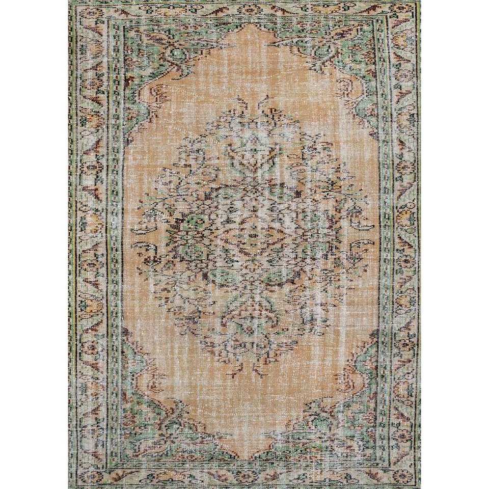Alfombras de Lana Doradas Vintage, Anudadas a Mano, Diseño Clásico Rectangular con Medallón para Sala de Estar, Pasillo, Diseño de Rompecabezas Pae-3222