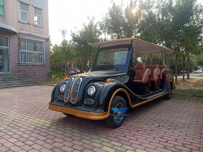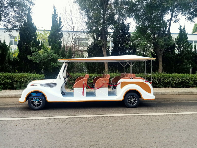 Carrito de golf eléctrico vintage, 4 ruedas, 11 plazas, área escénica, coche turístico