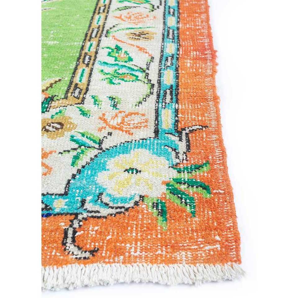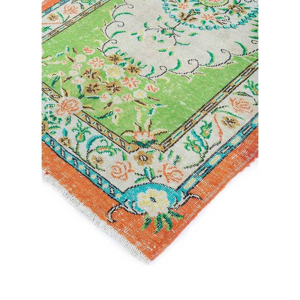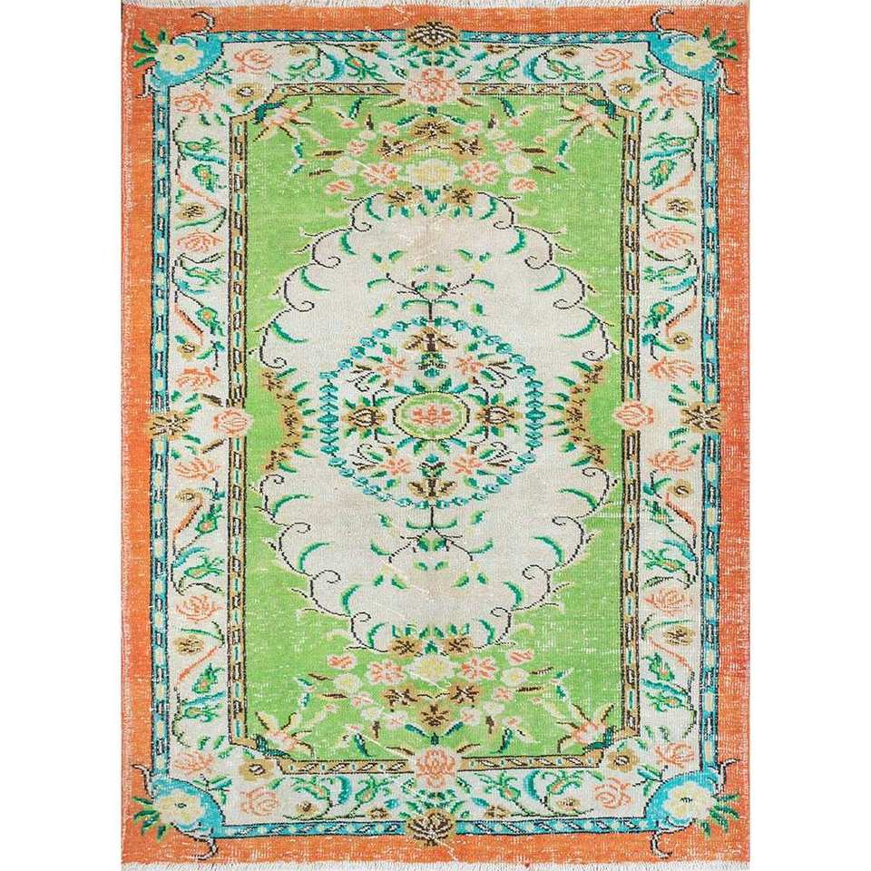 Alfombra de Lana Verde Vintage Anudada a Mano, Diseño Rectangular Abstracto con Medallón, para Sala de Estar, Pasillo, Hogar - Pae-473