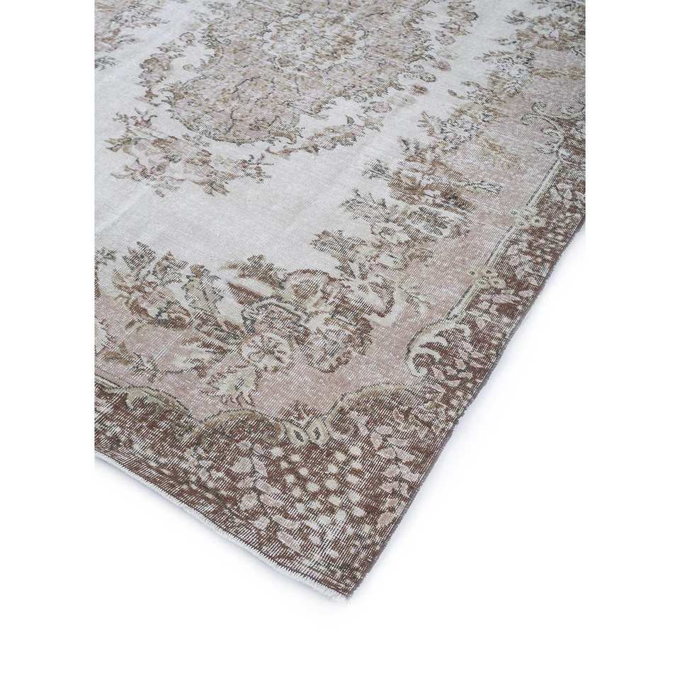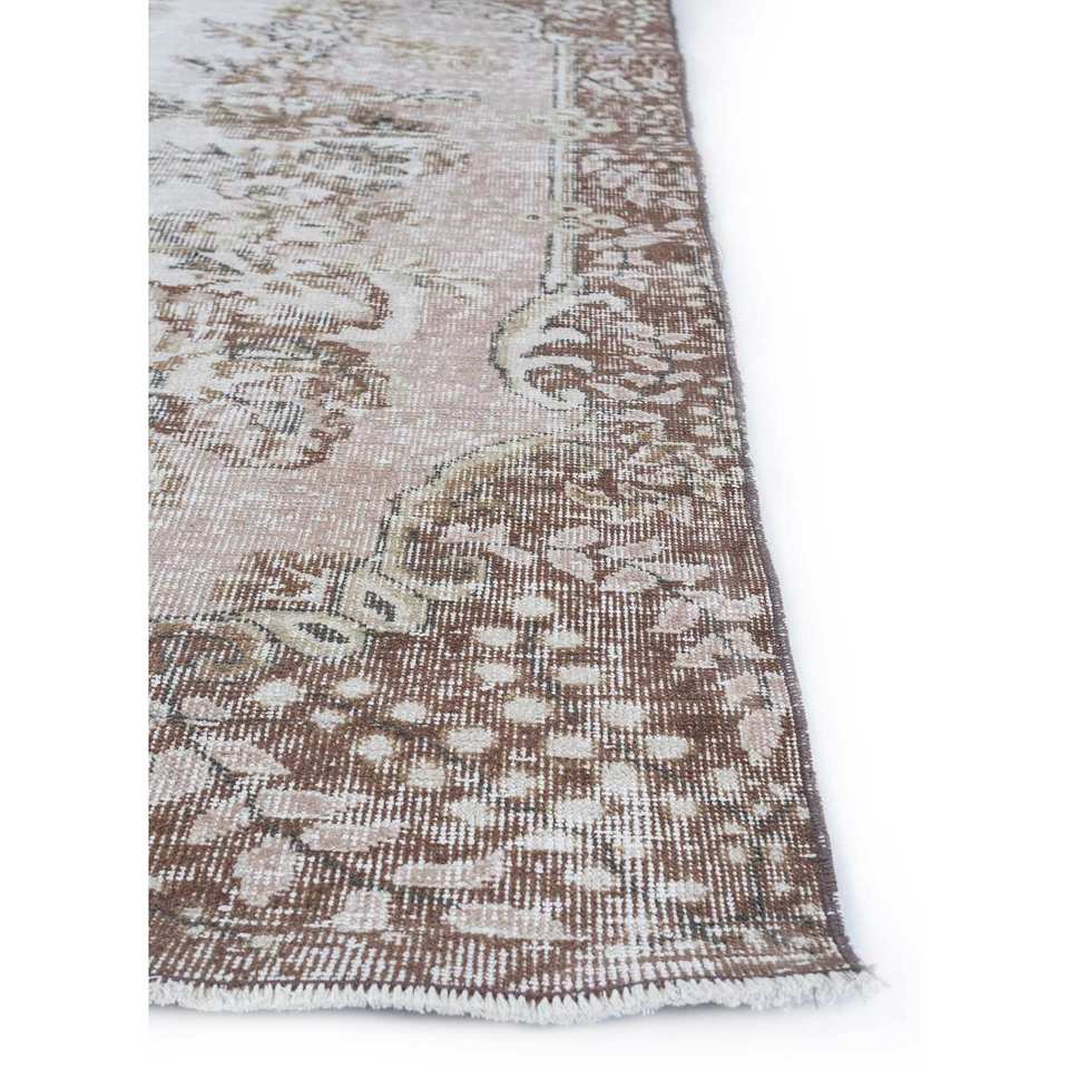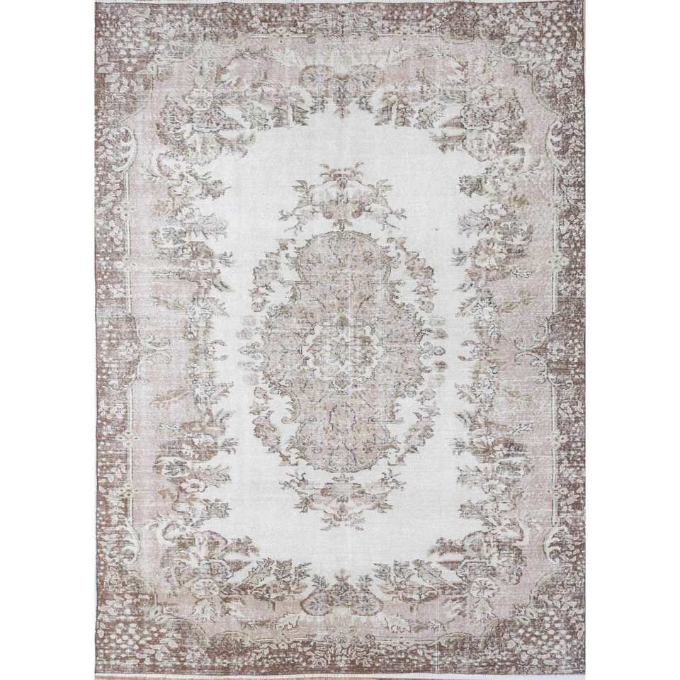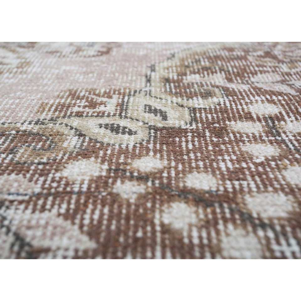 Alfombra de Lana Anudada a Mano Estilo Vintage, Beige y Marrón, con Diseño Abstracto de Medallón Rectangular para Sala de Estar o Pasillo, Pae-2169