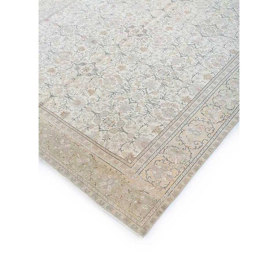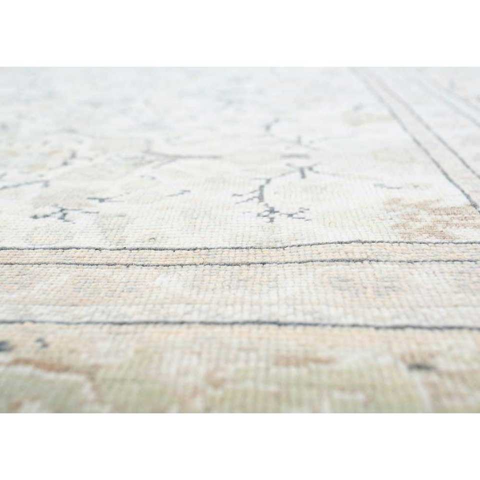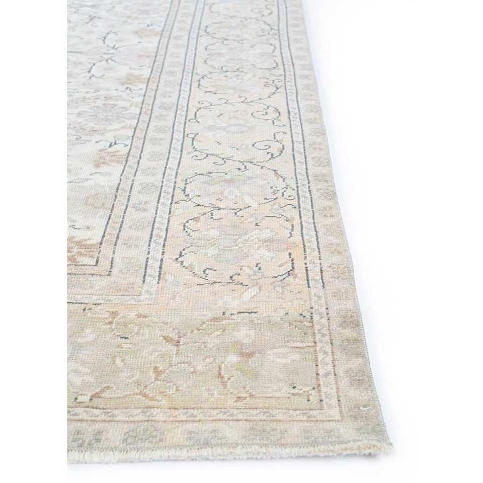 Alfombra de Lana Anudada a Mano Estilo Vintage, Beige y Marrón, con Diseño Abstracto de Medallón Rectangular para Sala de Estar o Pasillo, Pae-1660