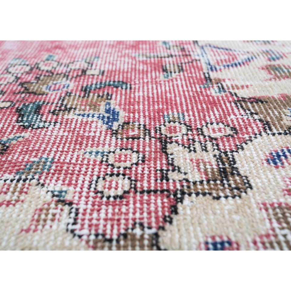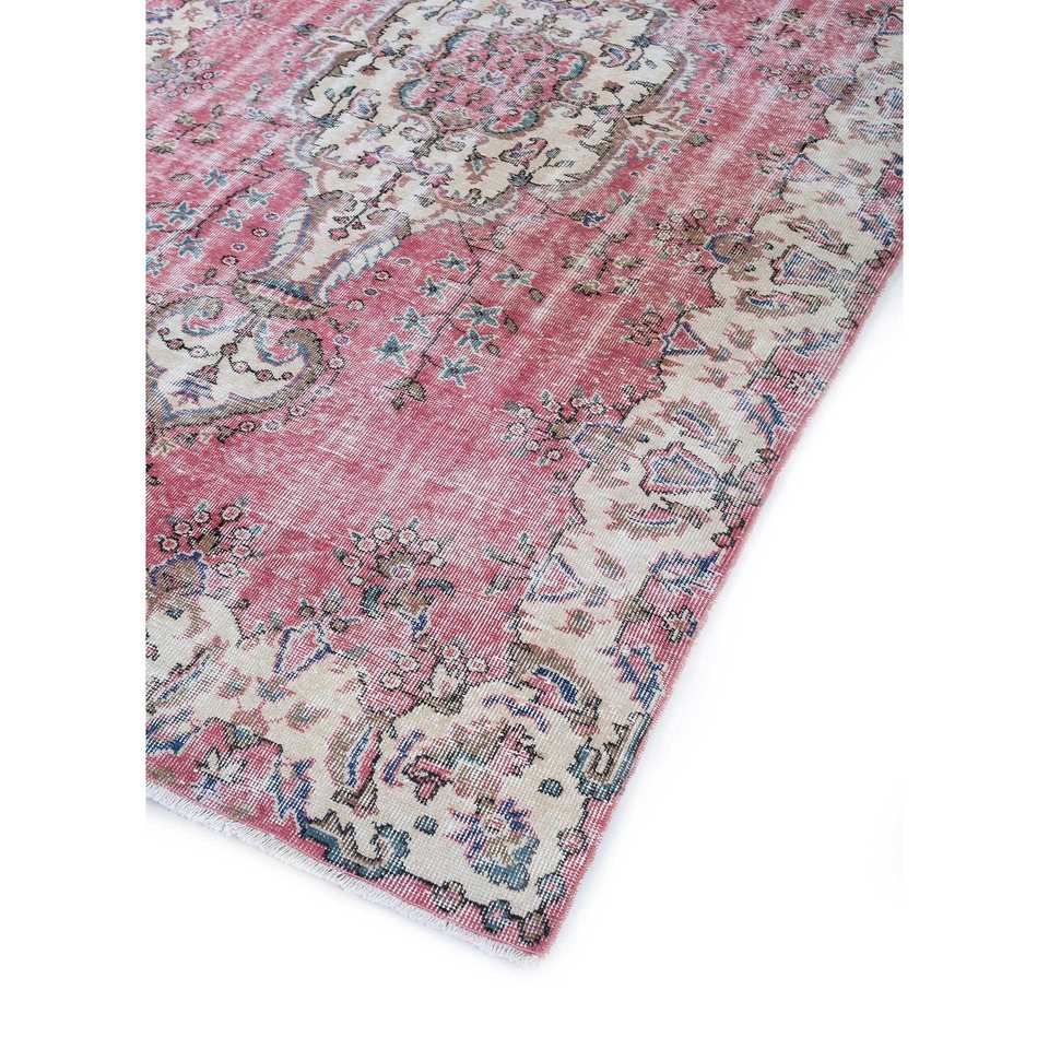 Alfombra de Lana Anudada a Mano de Estilo Vintage, Diseño Rectangular Abstracto con Medallón Rosa y Morado para Sala de Estar o Pasillo, Pae-2199