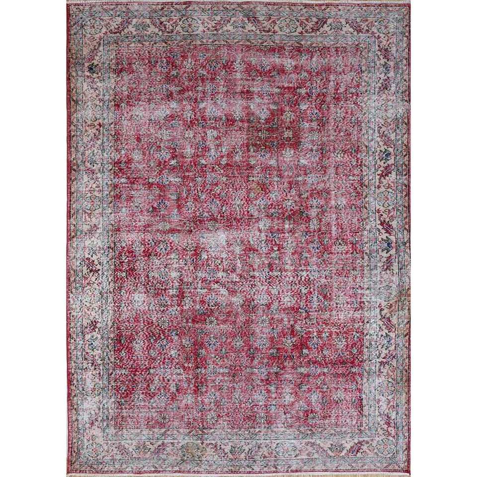 Alfombra de Lana Anudada a Mano Estilo Vintage, Diseño Floral Rojo y Naranja, Estilo Boho para Decoración de Sala de Estar, Alfombra de Pasillo 9x12 -Pae-2378