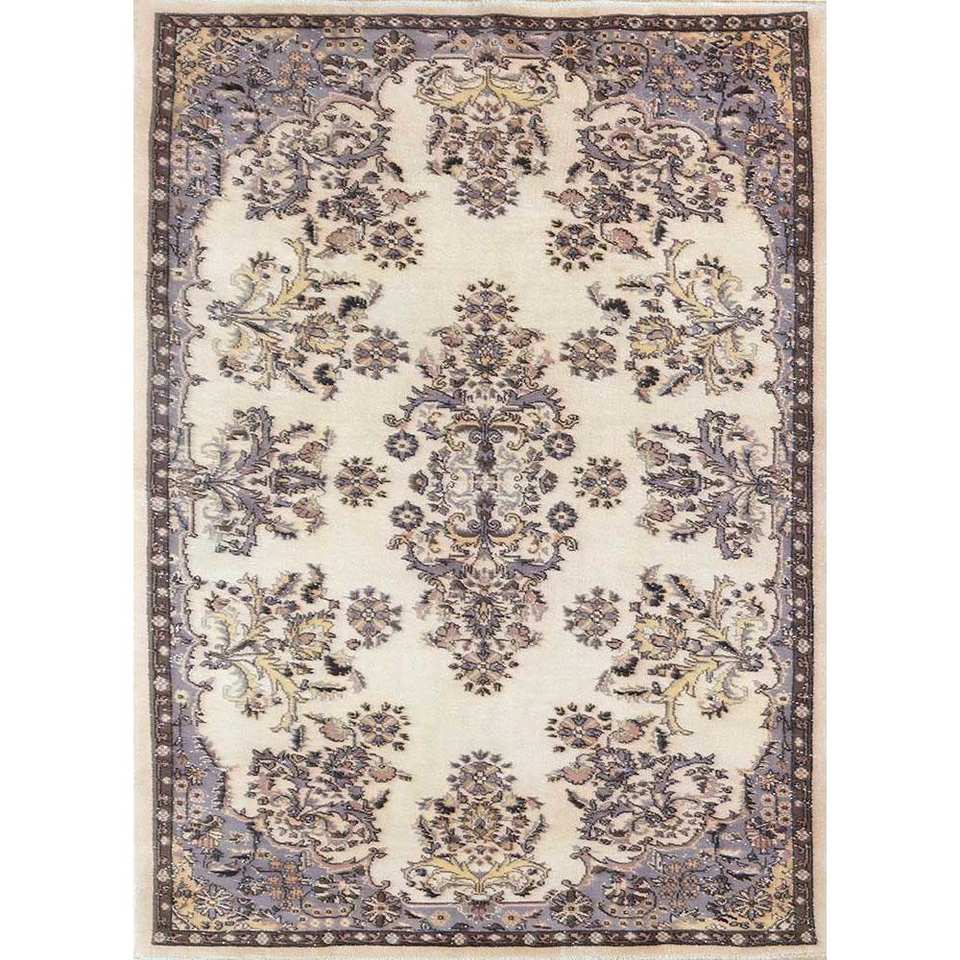 Alfombras de Lana Anudadas a Mano de Estilo Vintage, con Patrones Florales y Abstractos en Rosa y Morado, para Sala de Estar o Pasillo - Pae-1459