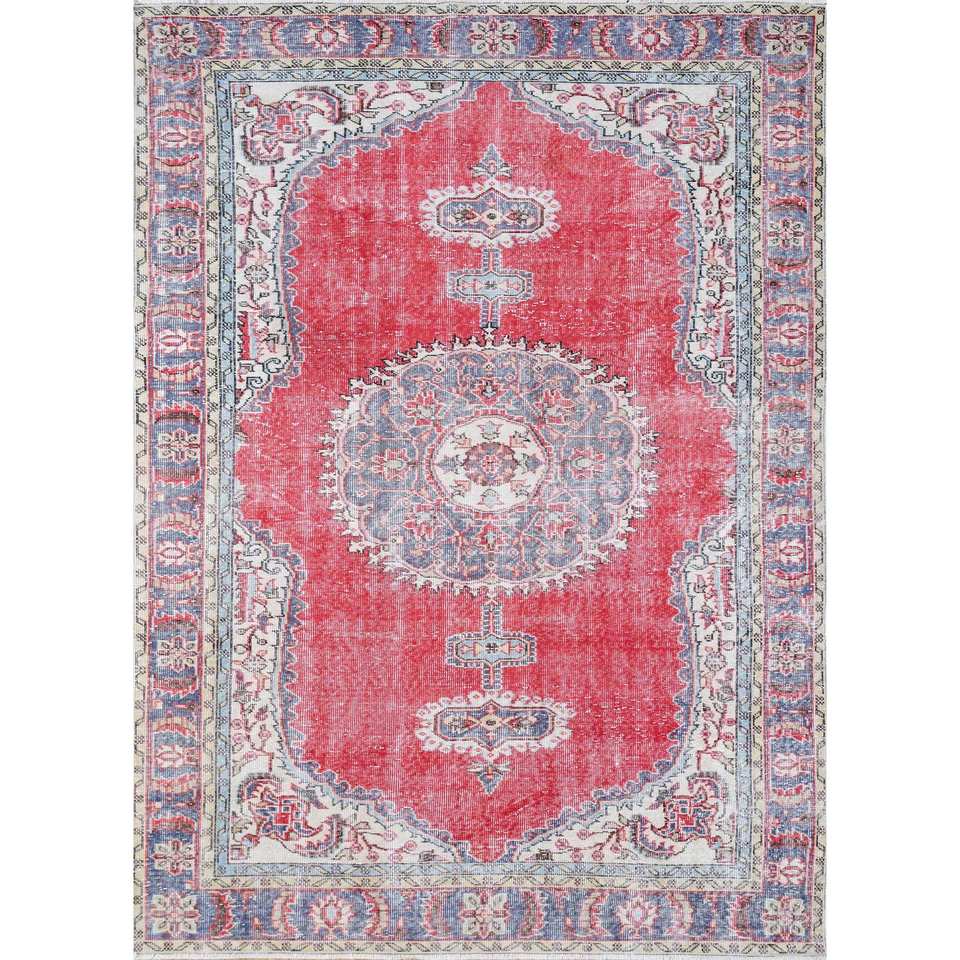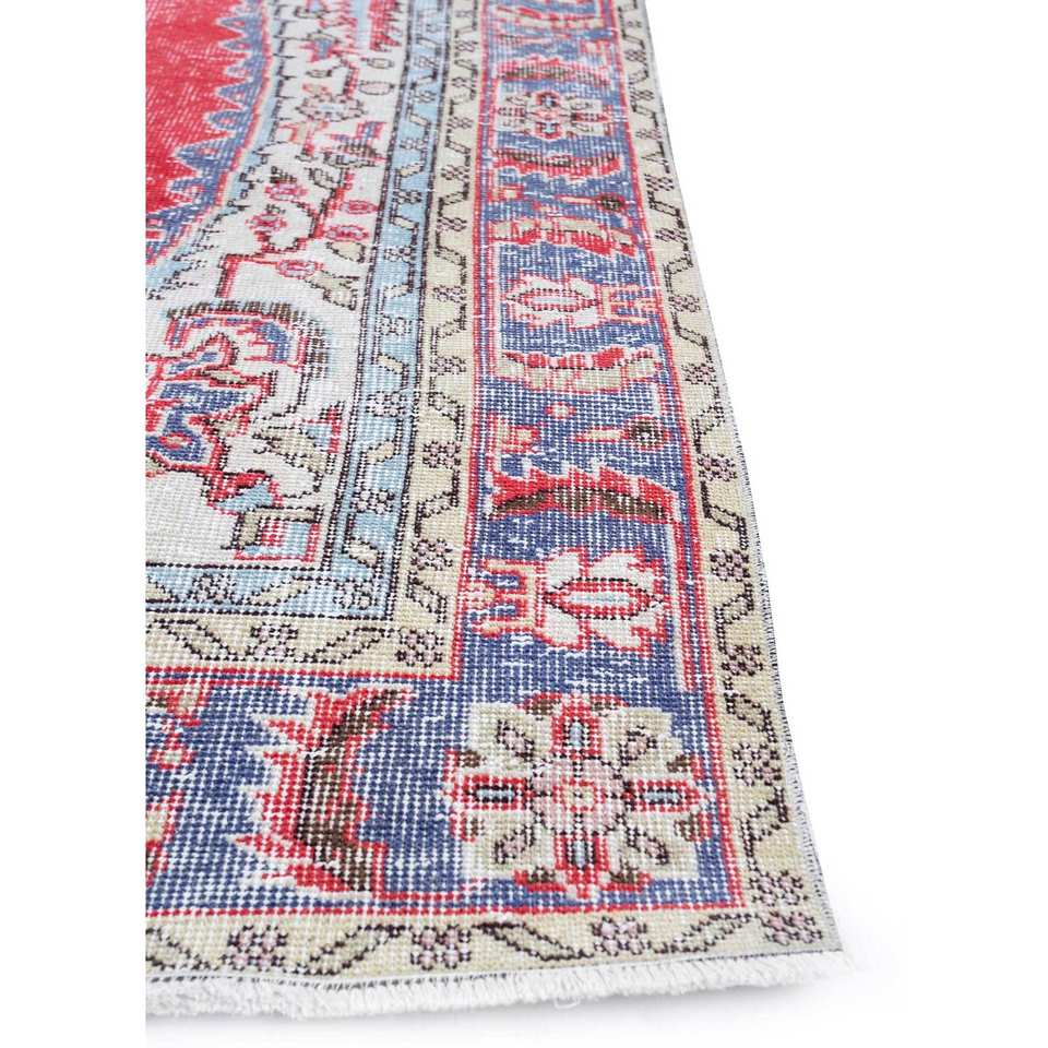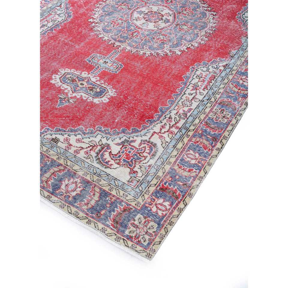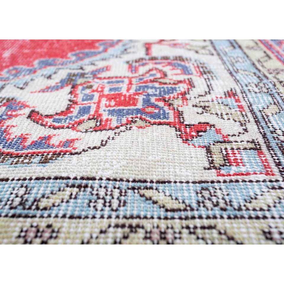 Alfombras de Lana Anudadas a Mano Estilo Vintage, Rojas y Naranjas, con Diseño Bohemio de Medallón Abstracto y Patrones Rectangulares para Sala de Estar, Pae-2386