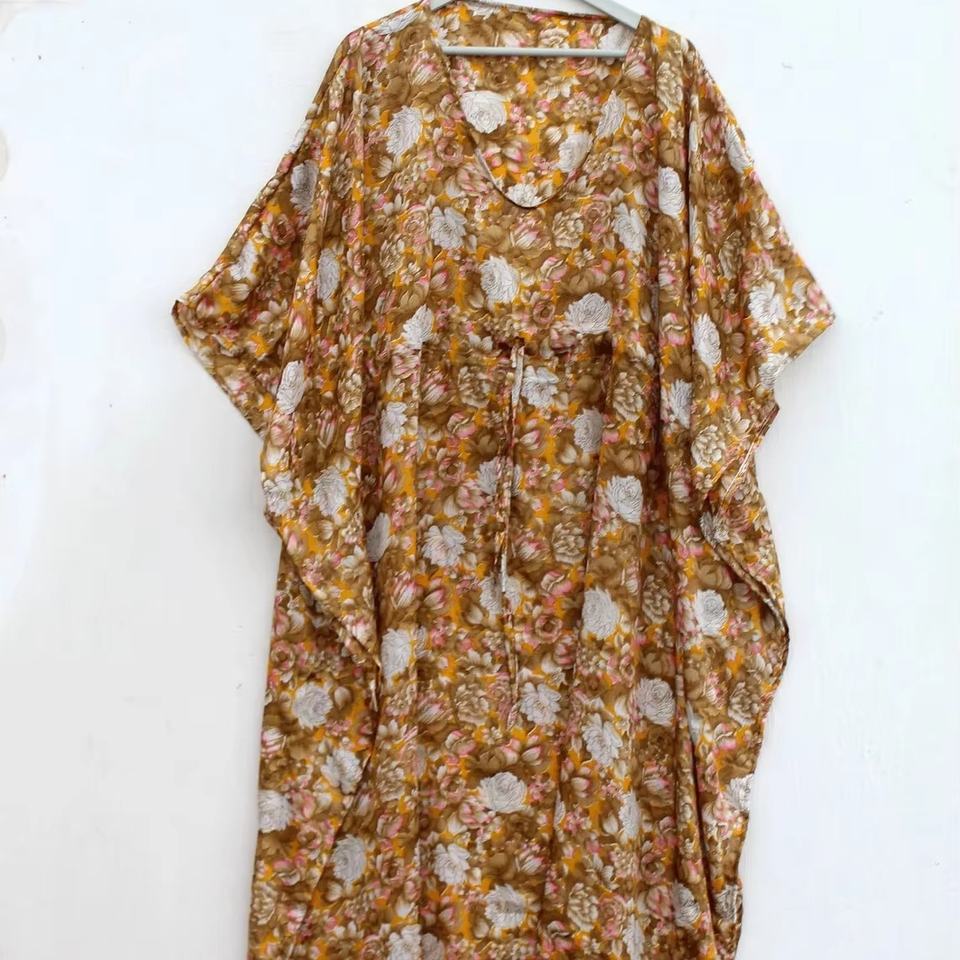 Vintage hecho a mano Upcycle gasa bata de baño Floral manga larga cuello en V lujo verano vestido de noche para mujer