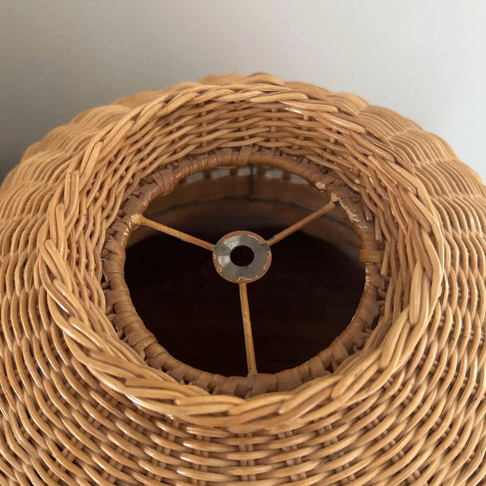 Lámpara de mesa vintage de mimbre tejida a mano con luz de noche Bohemia natural de caña para sala de estar, dormitorio o decoración costera del hogar