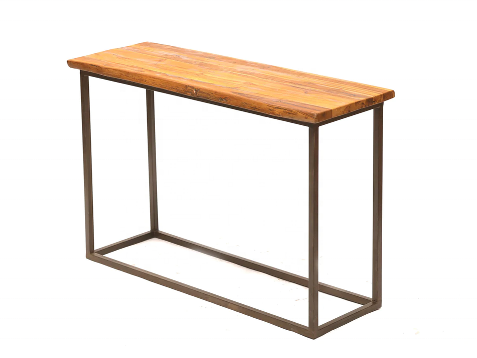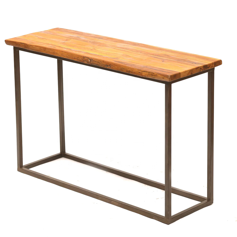 Mesa consola de hierro y madera para sala de estar, tablero de madera de acacia con borde vivo sólido, acabado natural y Negro industrial vintage