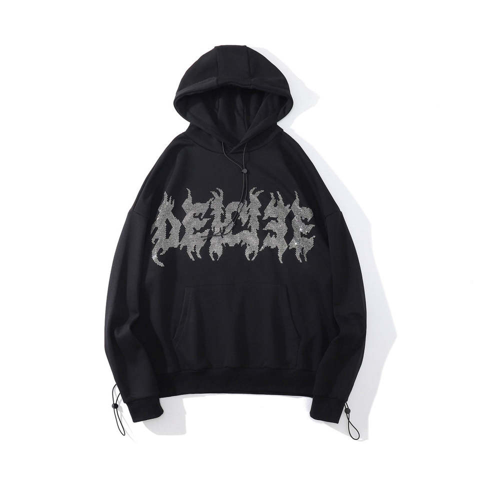 Sudadera con capucha vintage de estilo urbano con pedrería y cristales, diseño gráfico personalizado, con cremallera, estilo hip hop, ropa urbana
