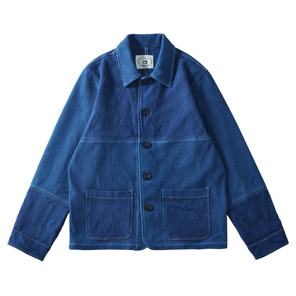 Chaqueta Vintage Índigo para Hombre, Ropa de Trabajo Francesa, Chaqueta de Carga, Tejido de Kendo Teñido Azul, Abrigo Cárdigan con Múltiples Bolsillos, Otoño e Invierno