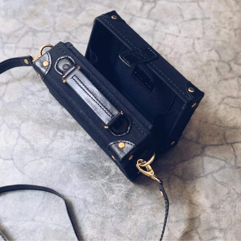 Mini bolso de caja estructurado de inspiración vintage, elegante bolso cruzado de lona negra con herrajes dorados para mujer