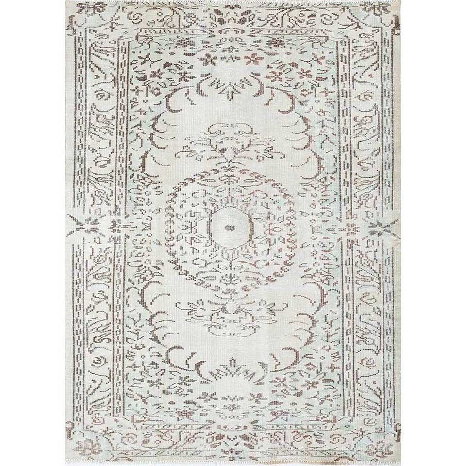 Alfombras Vintage de Lana Color Marfil, Anudadas a Mano, con Diseño de Medallón Rectangular Abstracto, para Entrada, Pasillo, Sala de Estar, Uso Juvenil - Pae-522