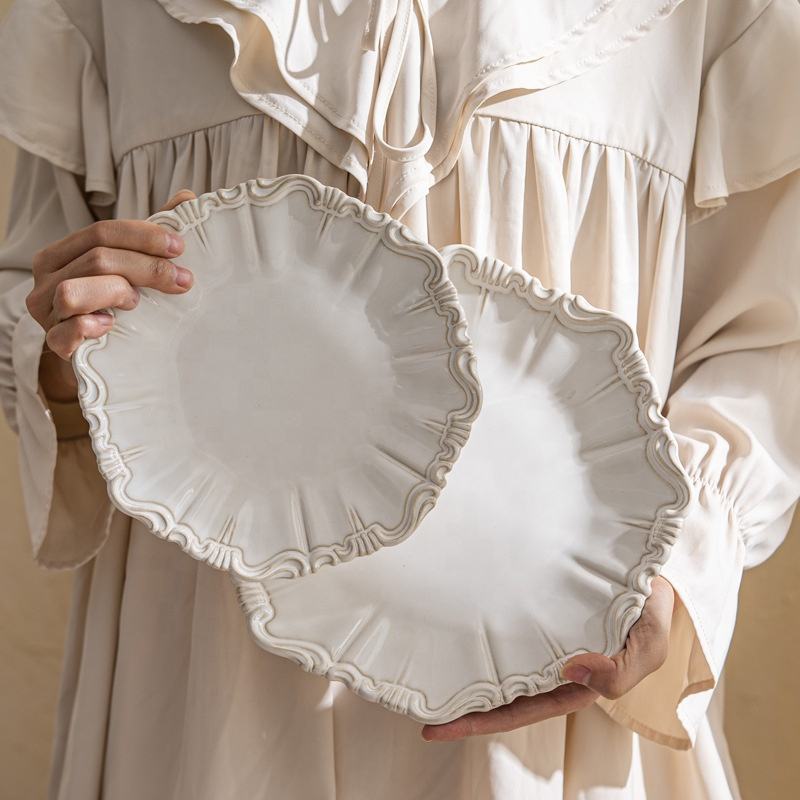 Lunaria Plato de cerámica para aperitivos Elegante plato de postre de 19,4x2,3 cm Bandeja de pastel personalizable y platos de cena elegantes para hoteles