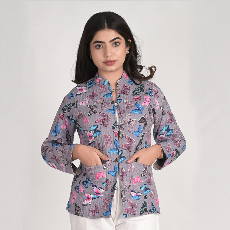 Chaquetas de invierno de algodón indio:Chaquetas reversibles hechas a mano del kantha del algodón