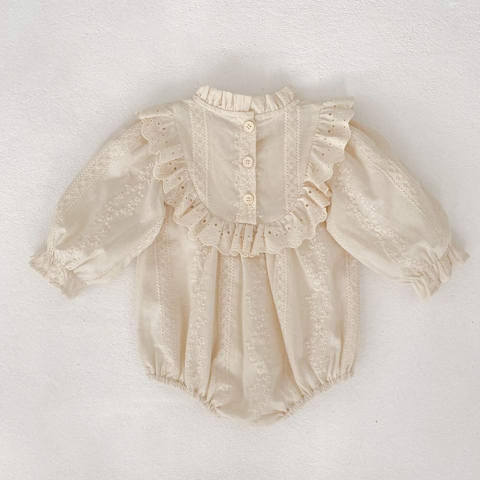 Mameluco de Encaje Vintage con Cuello de Volantes para Bebé, Body de Manga Larga para Niñas de 0 a 24 Meses, Mono de Algodón Suave para Bebés, Traje de Fiesta