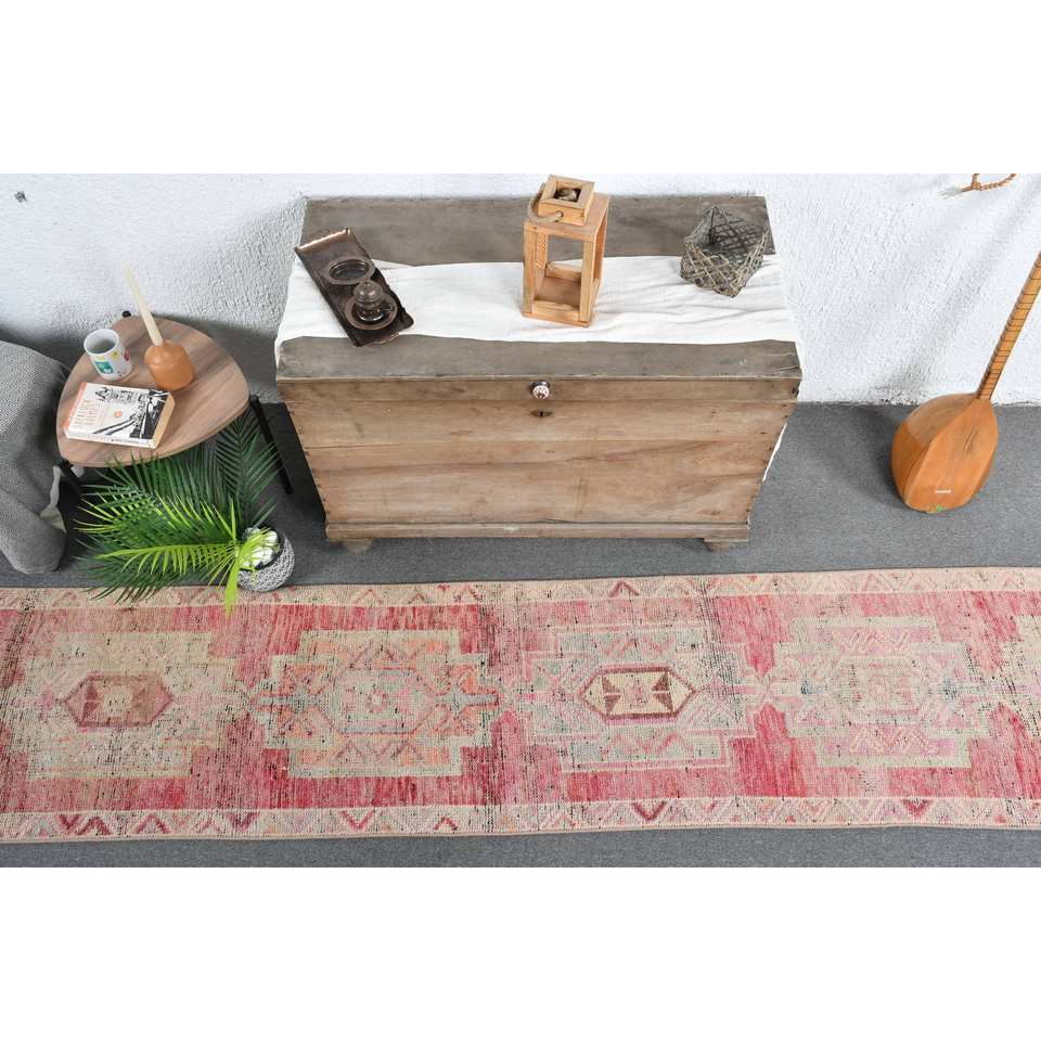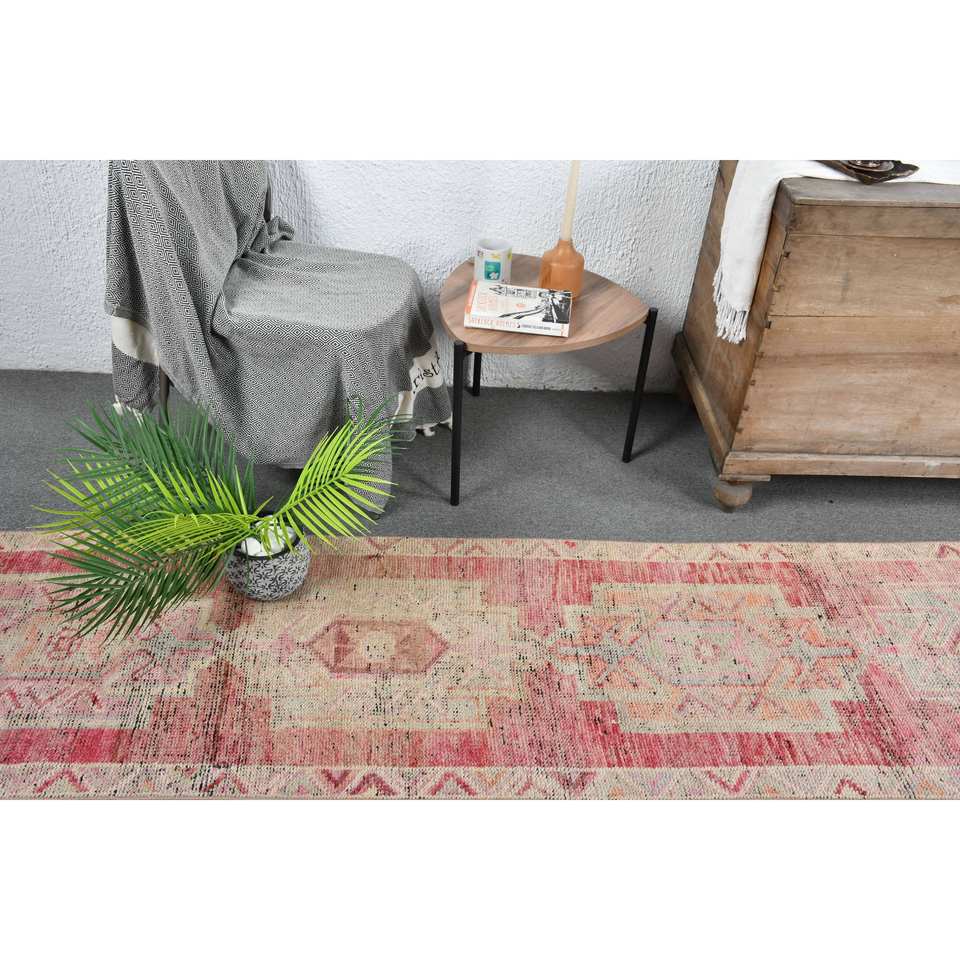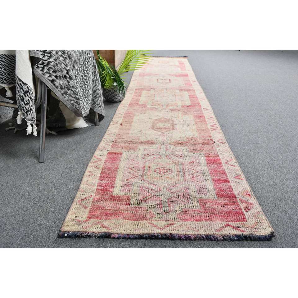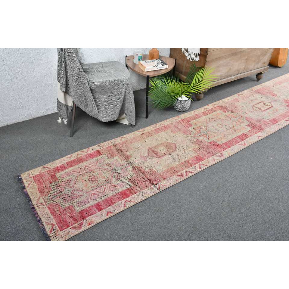Alfombra turca Vintage de área grande de 21x123 pies, hecha a mano, Beige, rosa, diseño de retazos, látex de lana para adolescentes, Rectangular abstracto