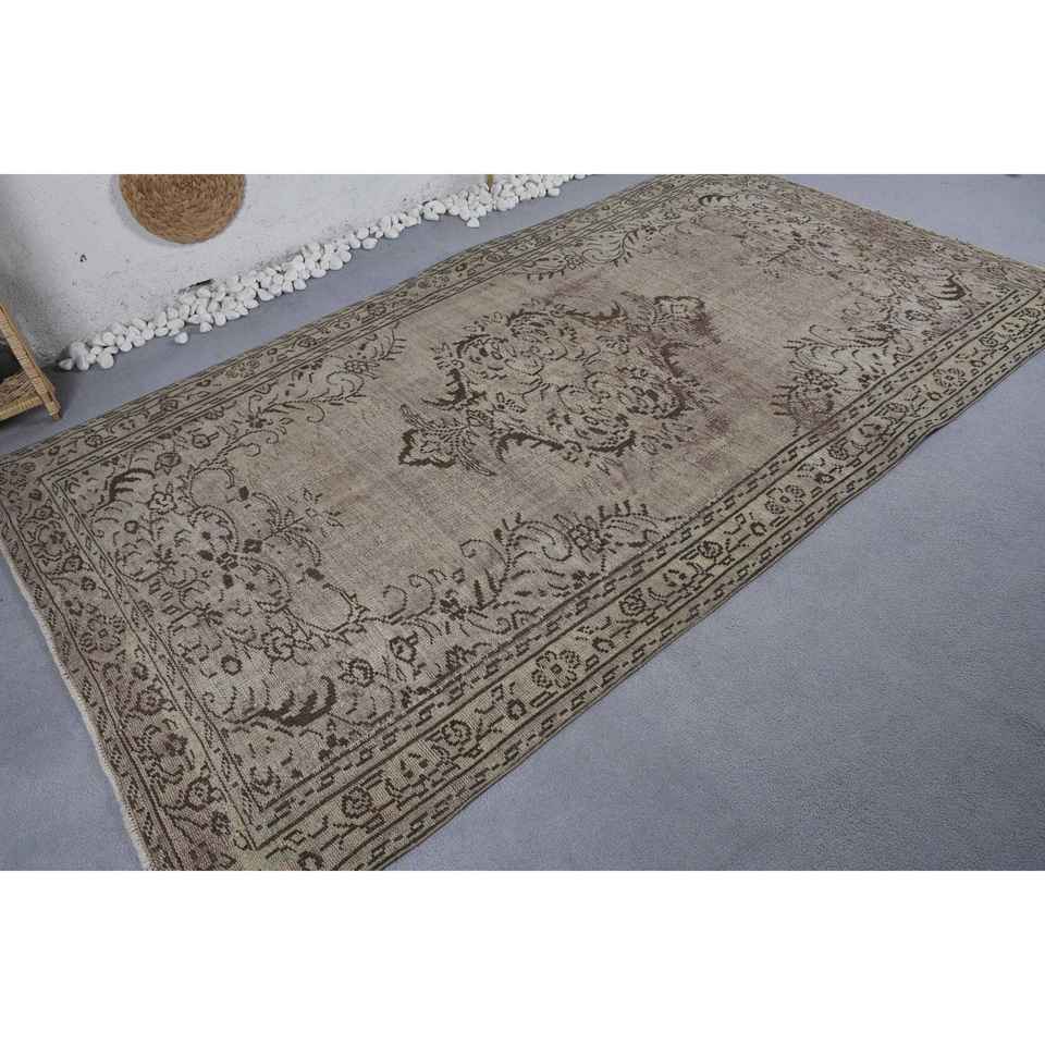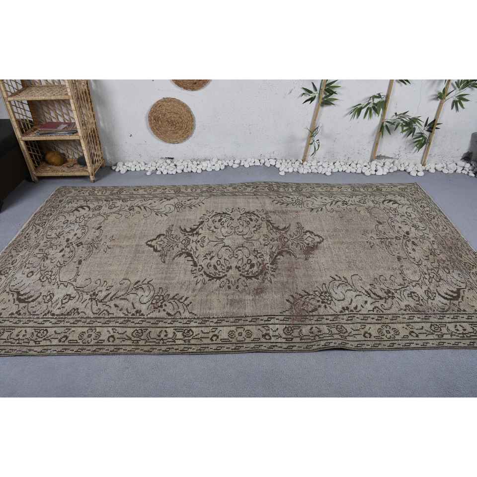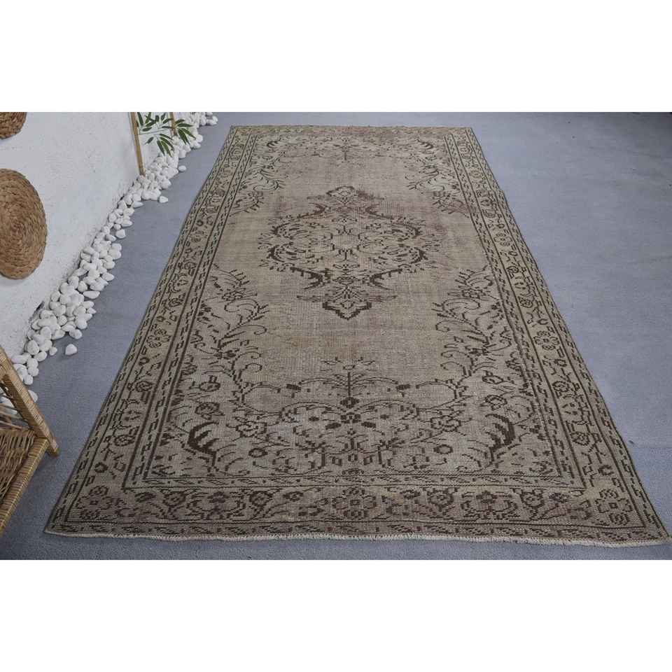 Alfombra turca de área grande Vintage, diseño de retazos beige y marrón, pasillo rectangular de látex de lana para habitación, tamaño de cabecera de 5,3x9,1 pies