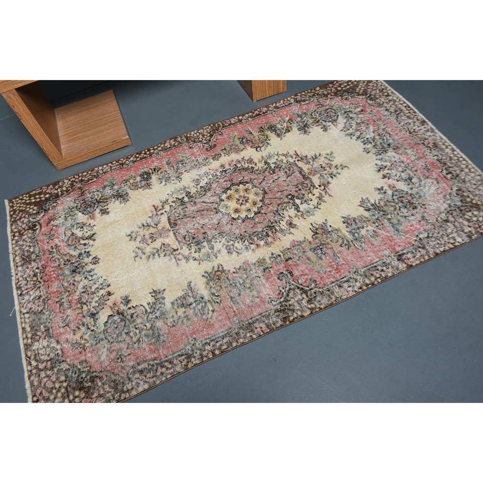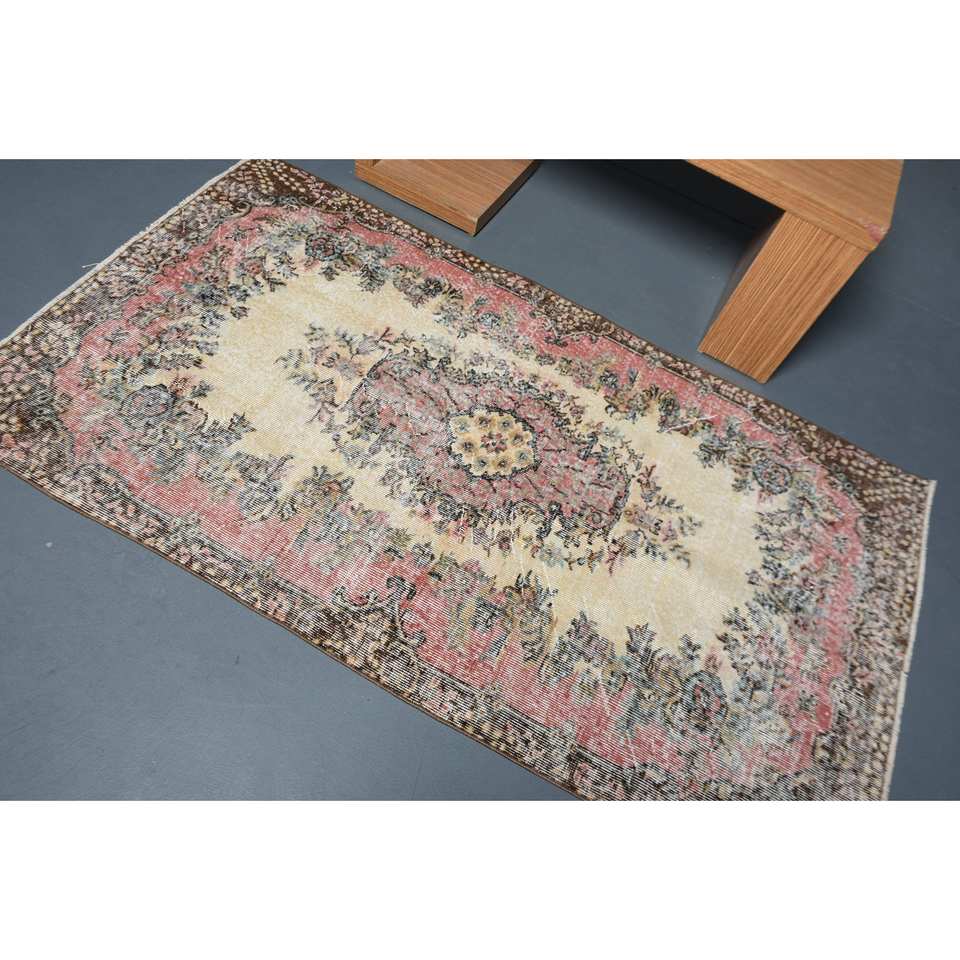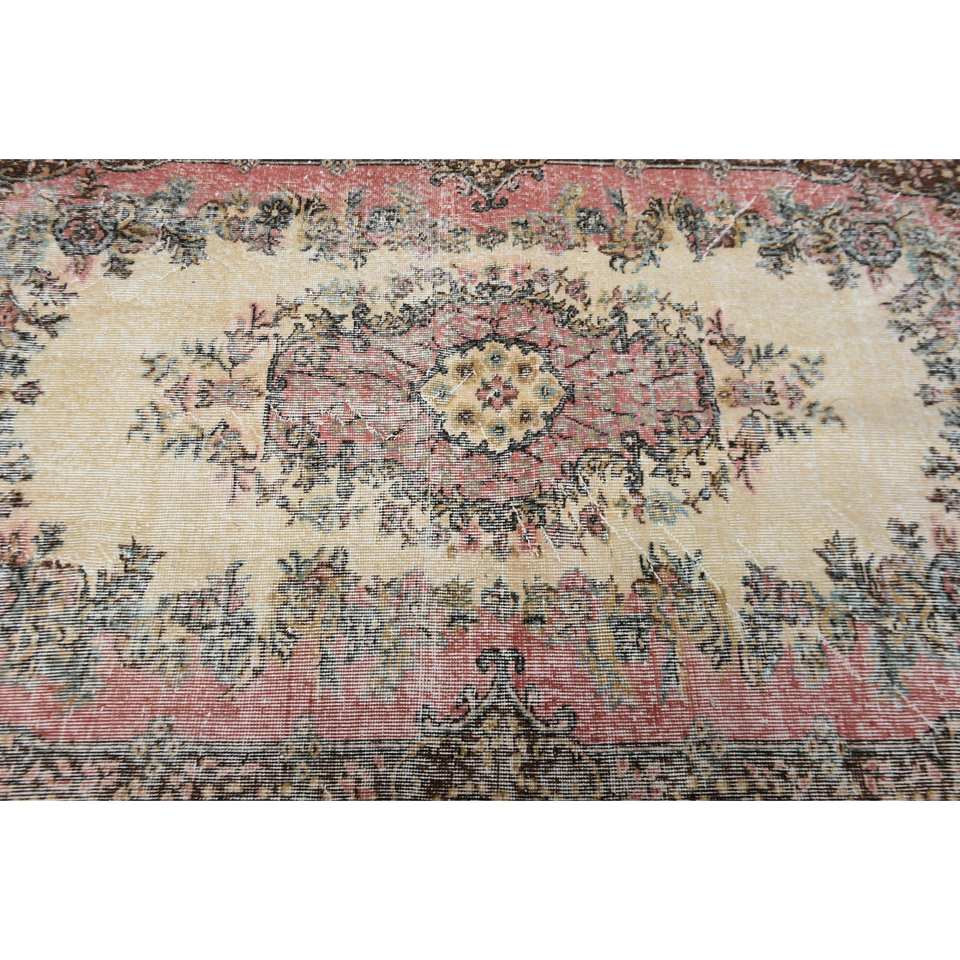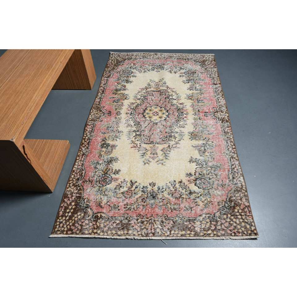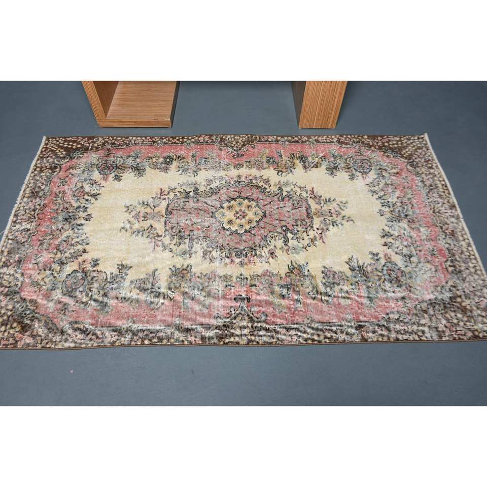 Alfombra turca de área grande Vintage Beige-Rosa 3,7 X 6.4ft Estilo clásico Lana Látex Respaldo Rectangular Patchwork Patrón Alfombra de habitación