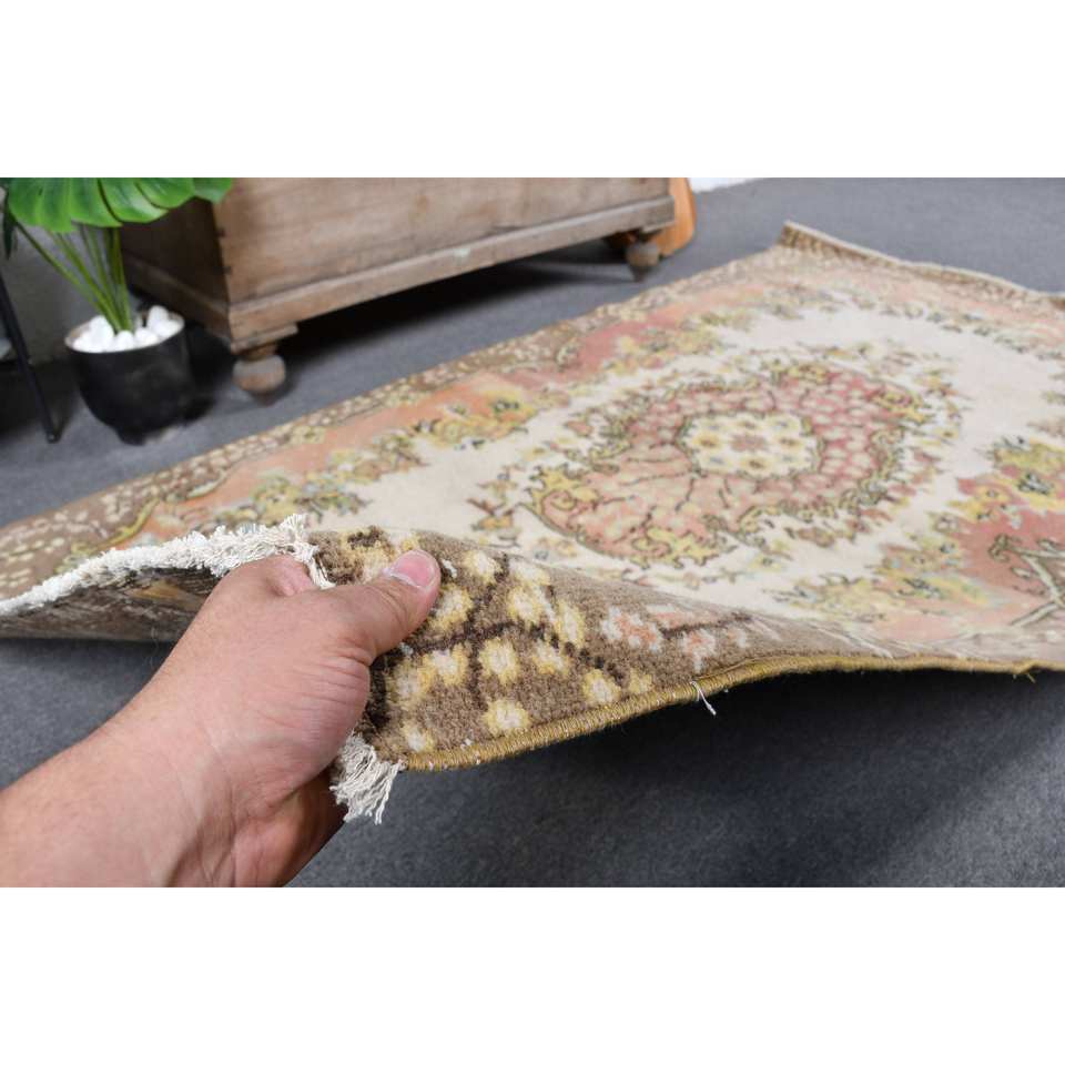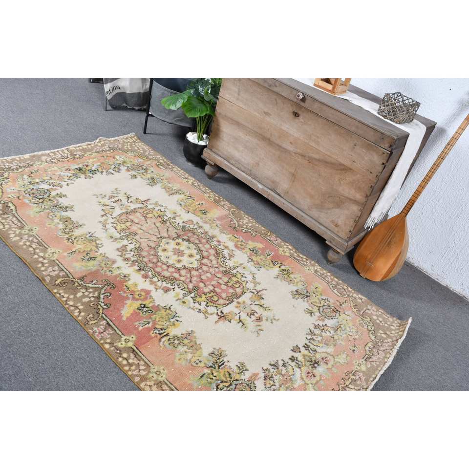 Alfombra turca de área grande Vintage, beige-Rosa, 3,7x6,6 pies, respaldo de látex de lana clásico, patrón abstracto, alfombra rectangular para habitación de pasillo