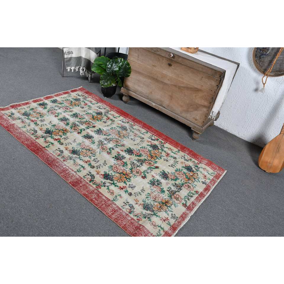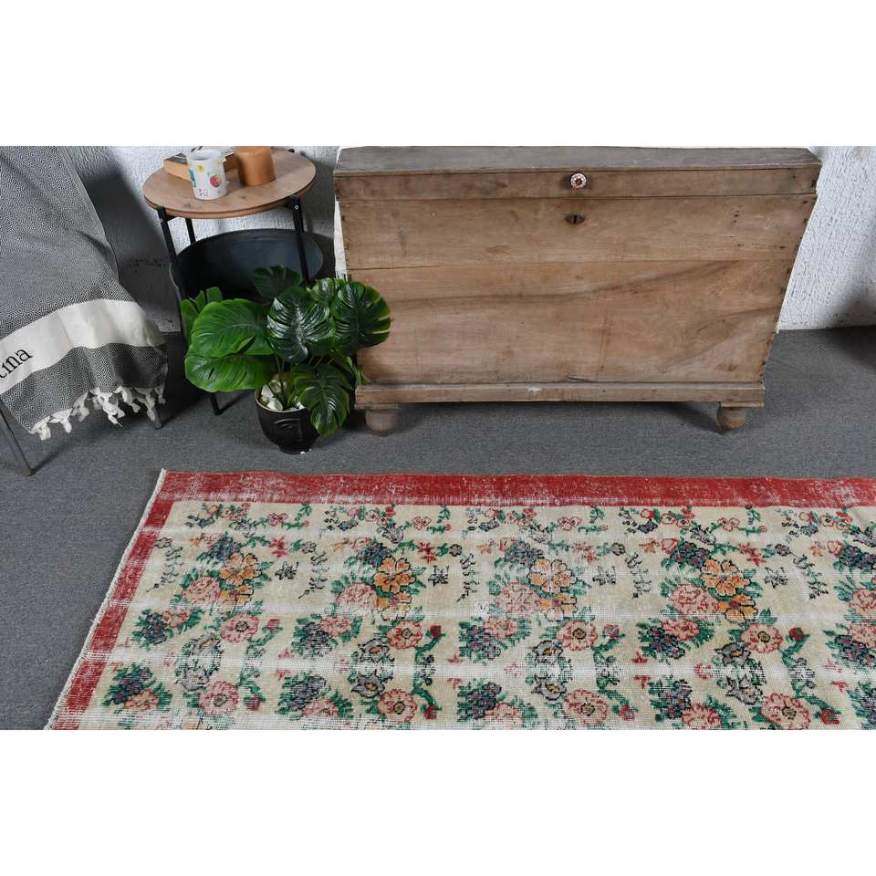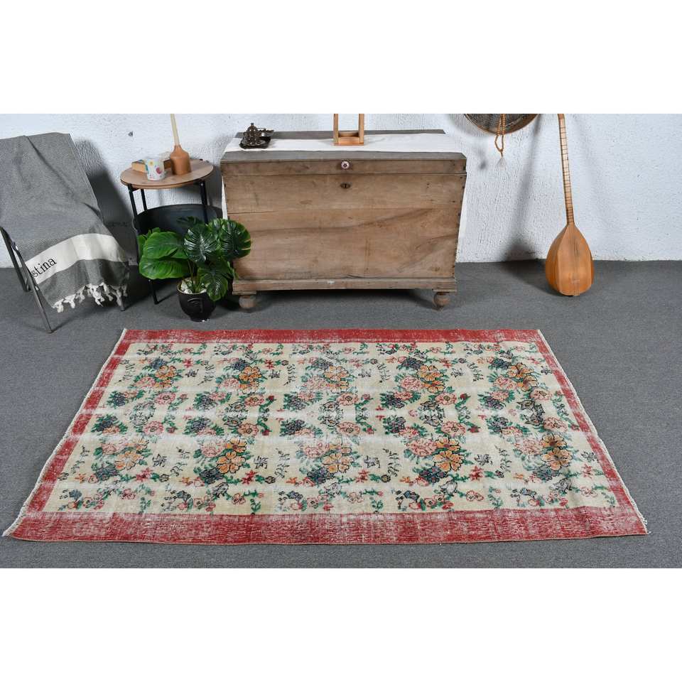 Alfombra Turca Vintage de Gran Tamaño, Estilo Kilim, Beige y Rojo, con Diseño de Patchwork, 6.2 x 3.6 pies, Rectangular, Material de Lana, Pelo Medio, Ecológica