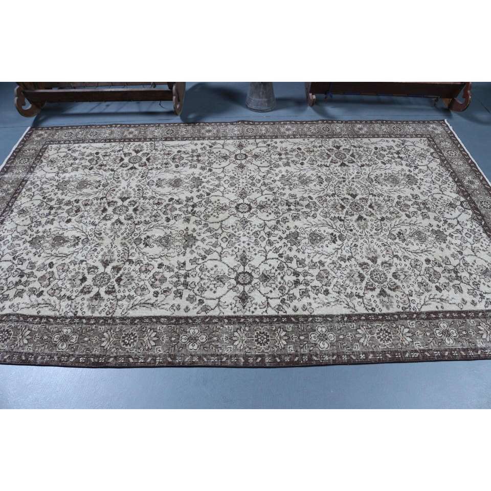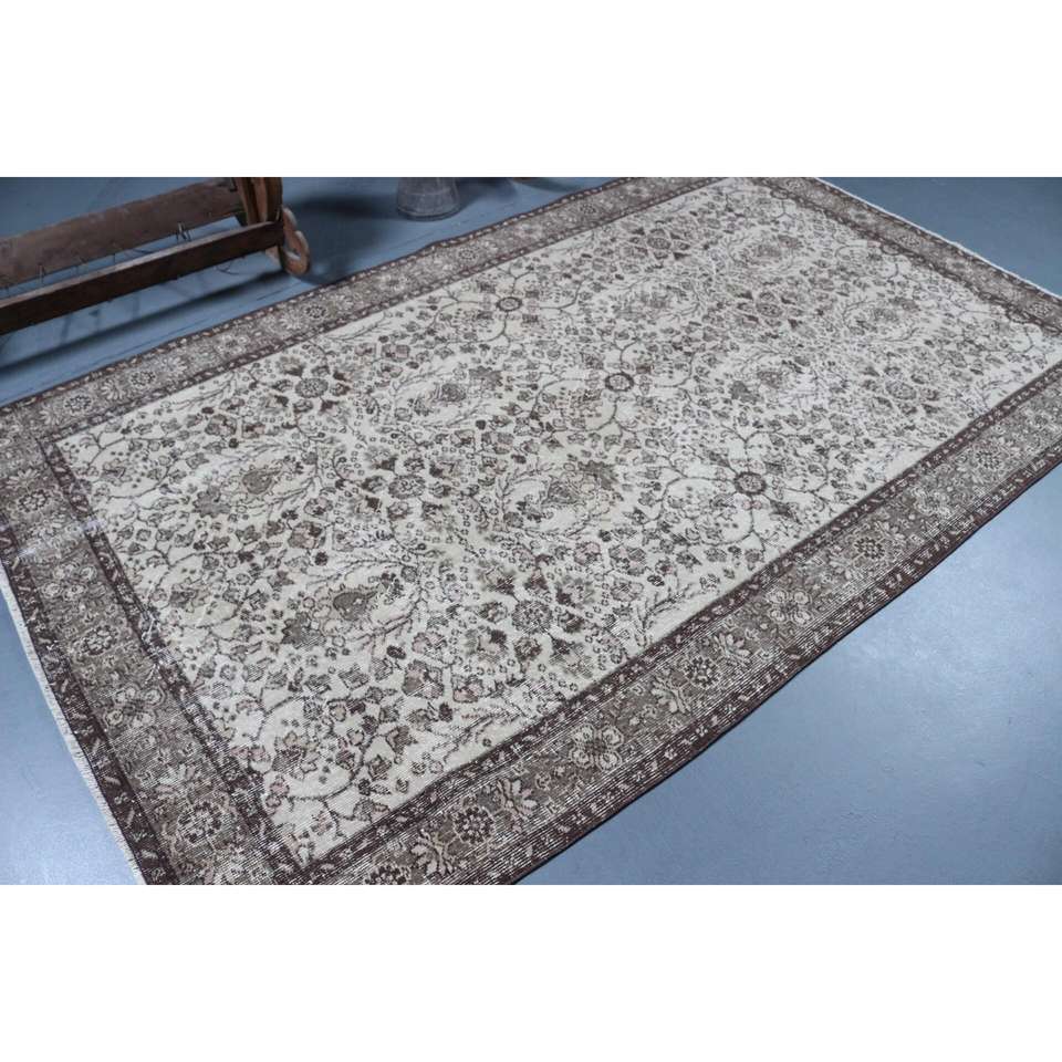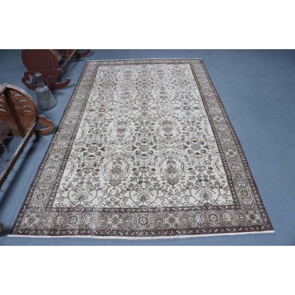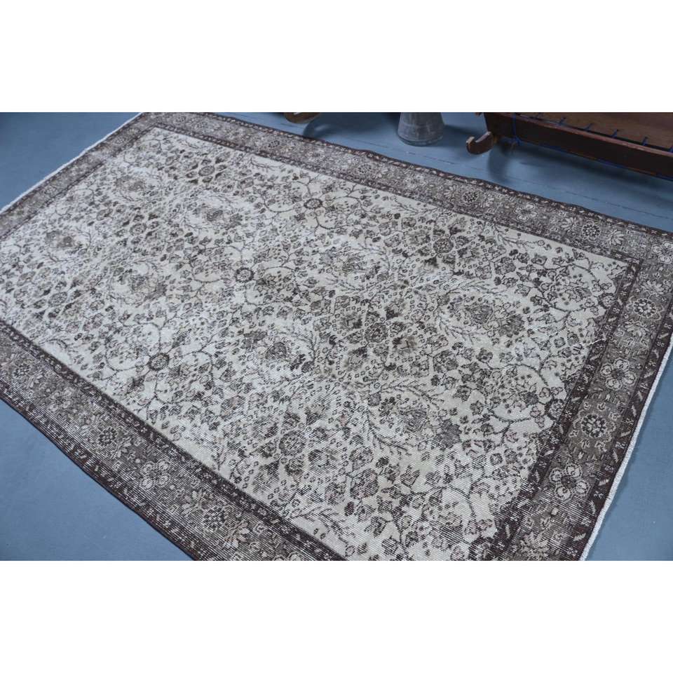 Alfombra Grande Vintage, Alfombra Turca de 5.2x8.6 pies, Alfombra de Lana Gris Ombré
