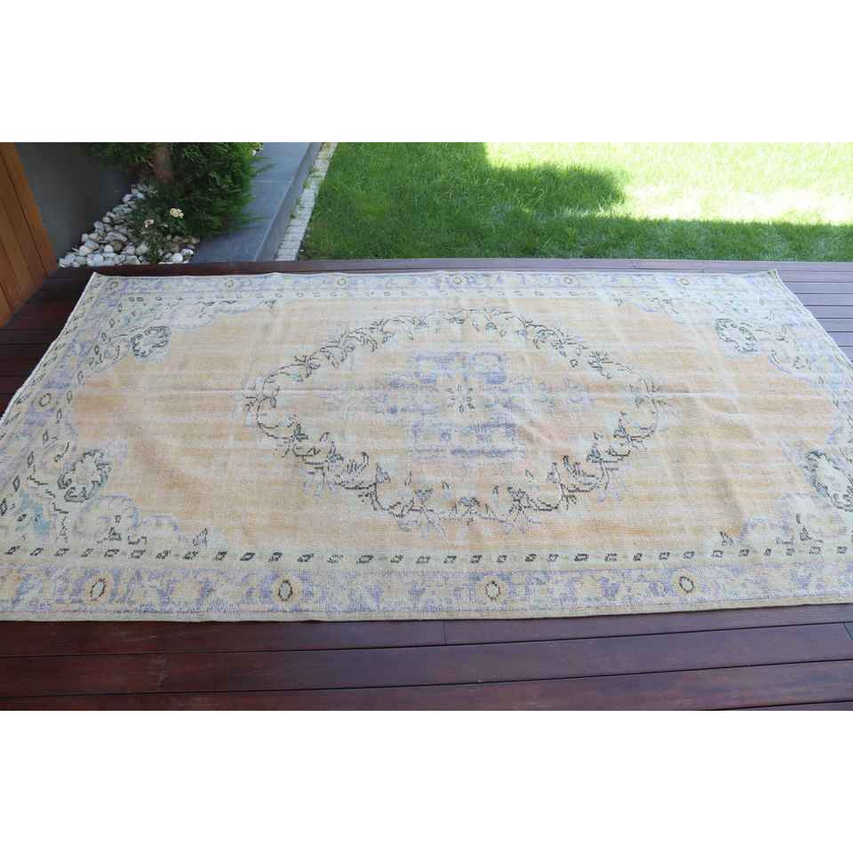 Alfombra Grande Vintage, Alfombra Turca de 5,2x8,9 pies, Alfombra de Lana Azul Ombré