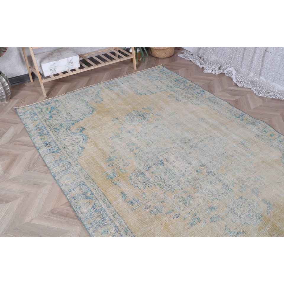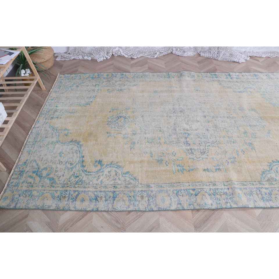 Alfombra Grande Vintage, Alfombra Turca de 5.4x8 pies, Alfombra Azul de Lana del Suroeste