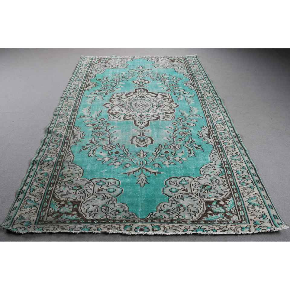 Alfombra Grande Vintage de 5,8x9,2 pies (178x279 cm), Alfombra Turca Azul del Suroeste