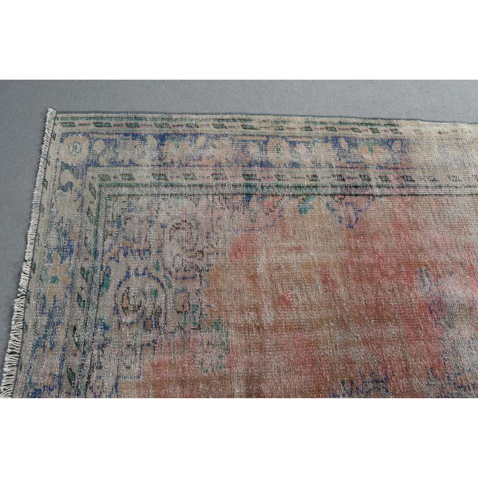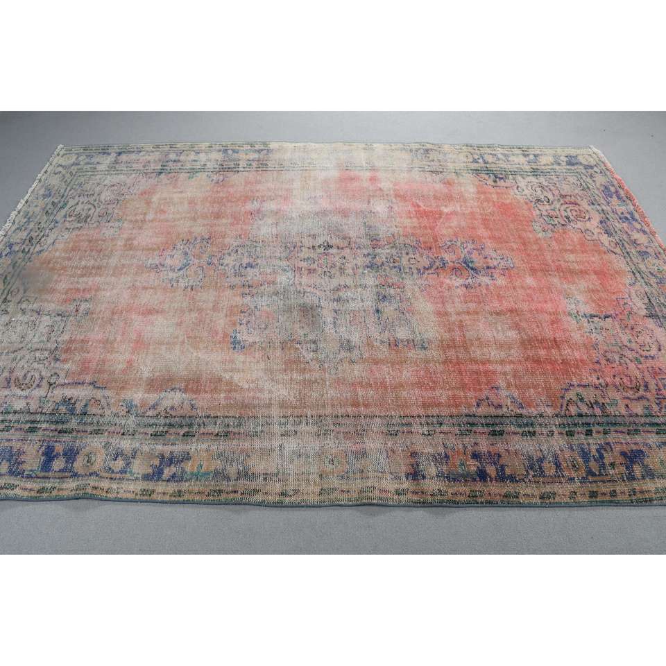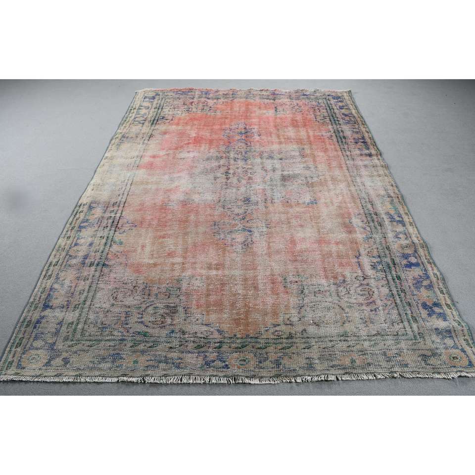 Alfombra Vintage Grande de Lana Ecológica de 6,4x9 pies (195x273 cm) Alfombra Turca Roja con Parches y Base de Látex