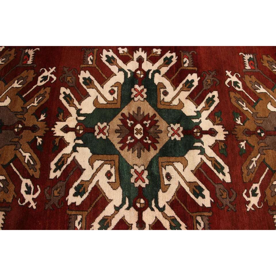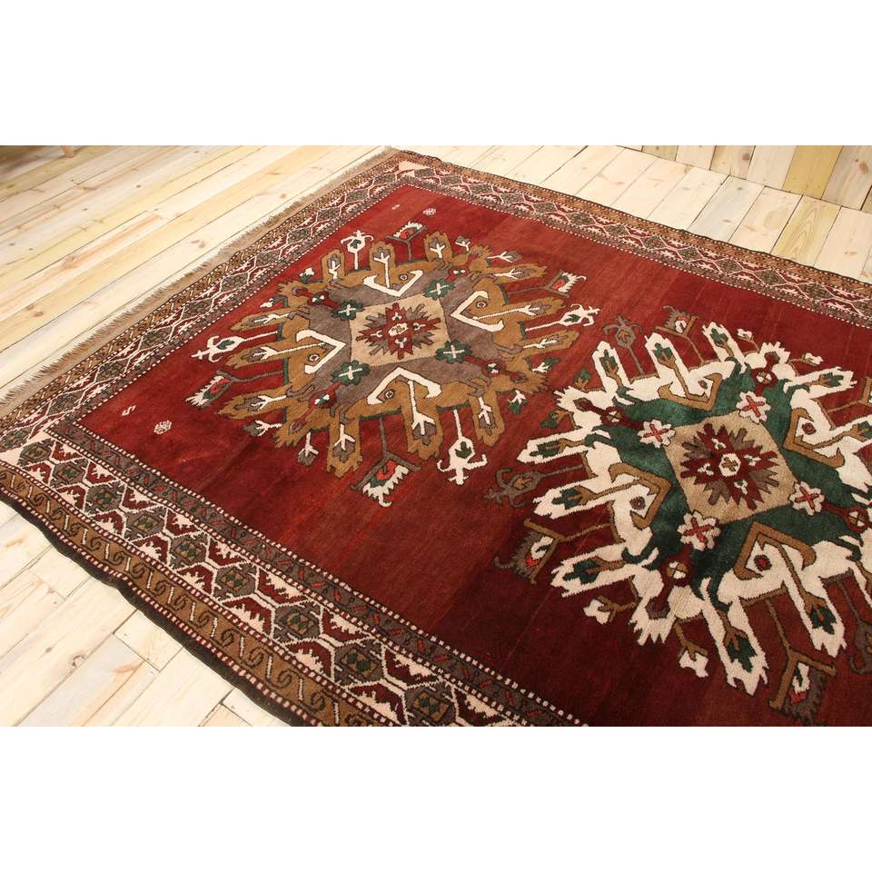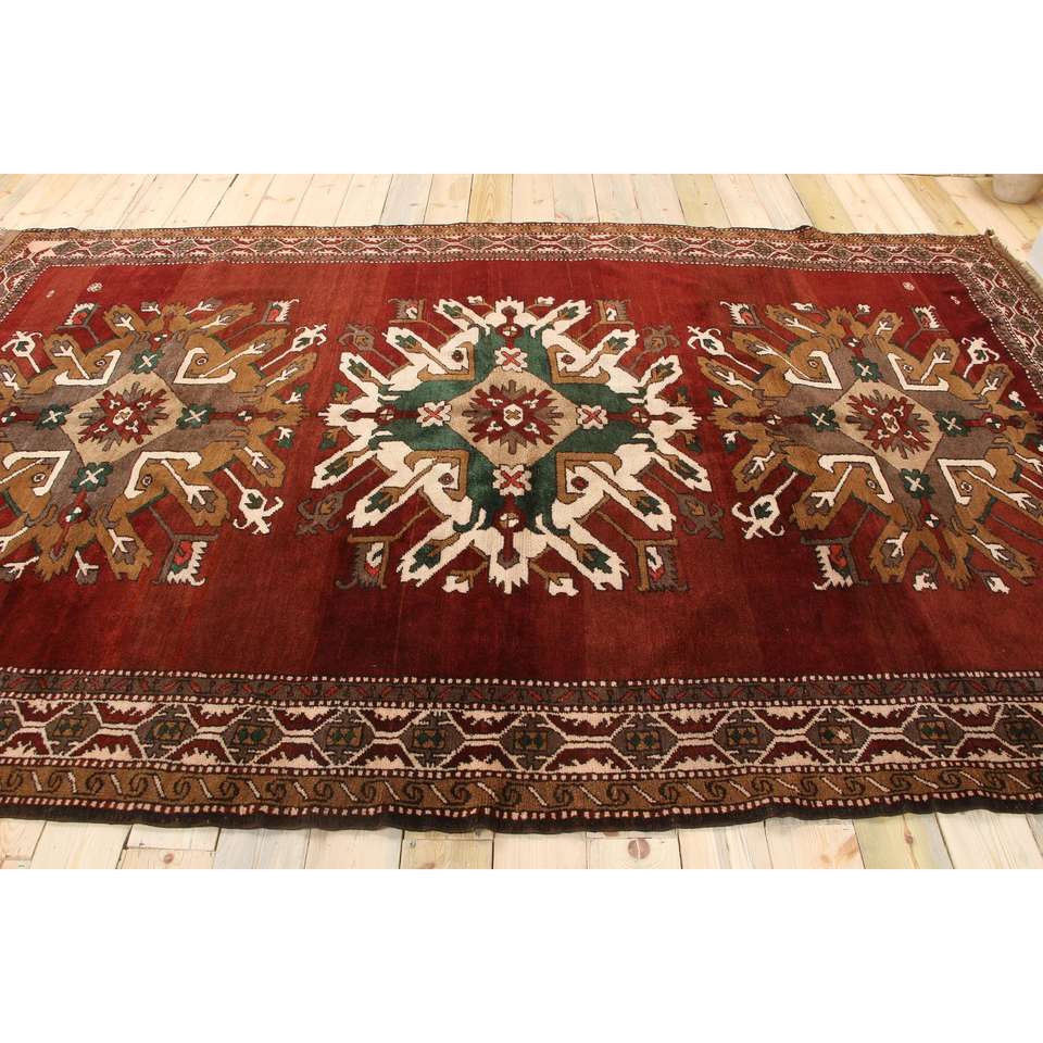 Alfombra Grande Vintage de 6.5x10.6 pies (199x322 cm), Alfombra Turca a Cuadros Roja