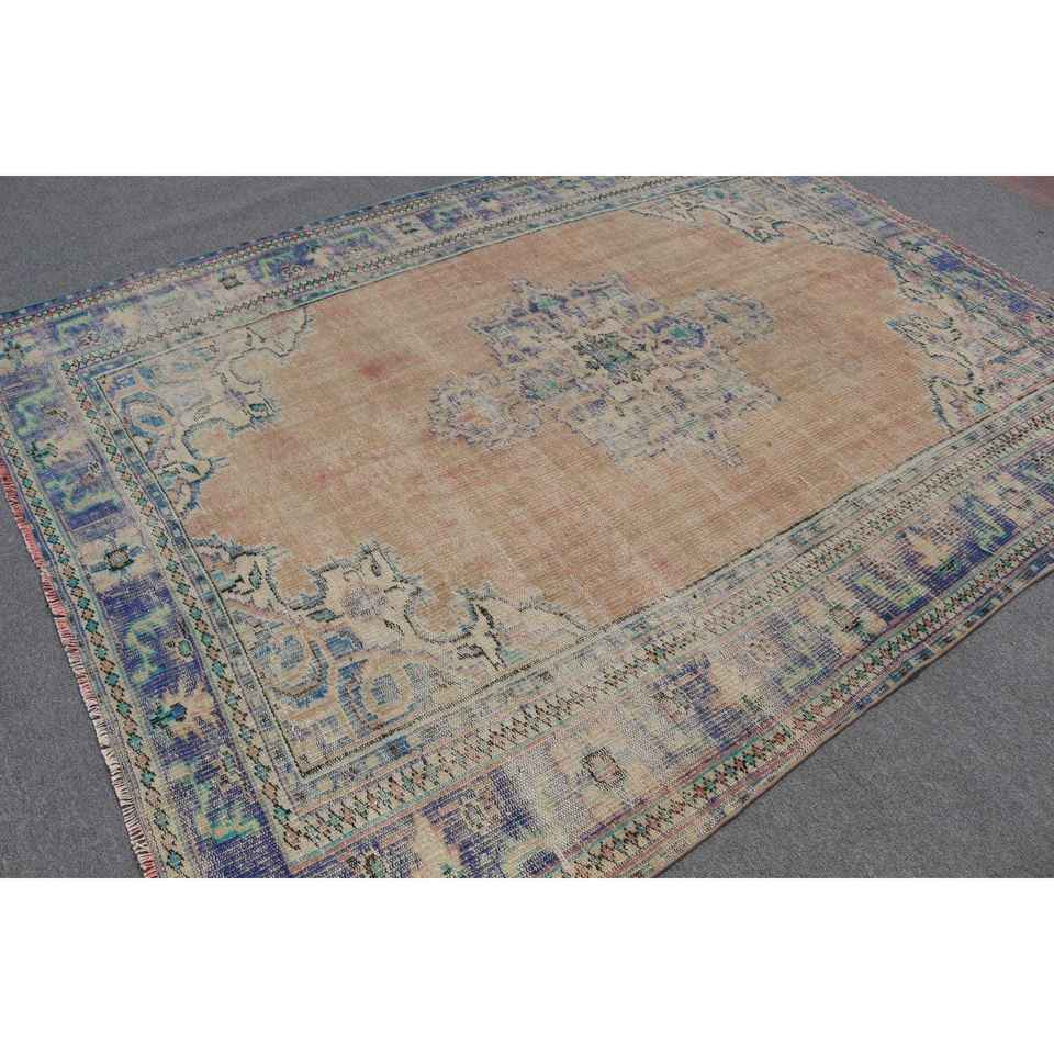Alfombra grande vintage de 6.6x8.8 pies, alfombra de lana turca azul con lunares