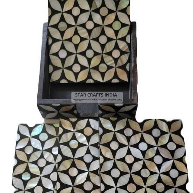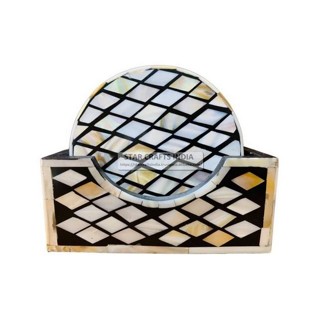 Posavasos con incrustaciones de lujo vintage, posavasos de té con incrustaciones de madreperla de estilo marroquí al mejor precio