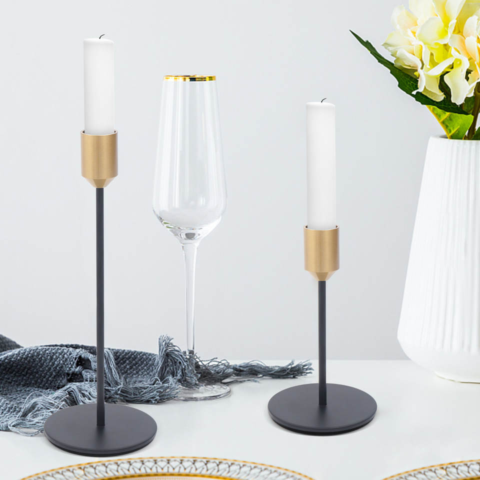 Candelabros cónicos vintage modernos negros y dorados, candelabros largos y elegantes para chimenea, fiesta, comedor, decoración del hogar