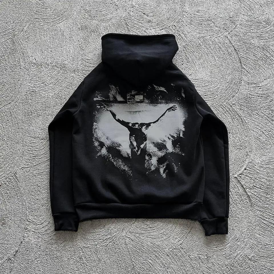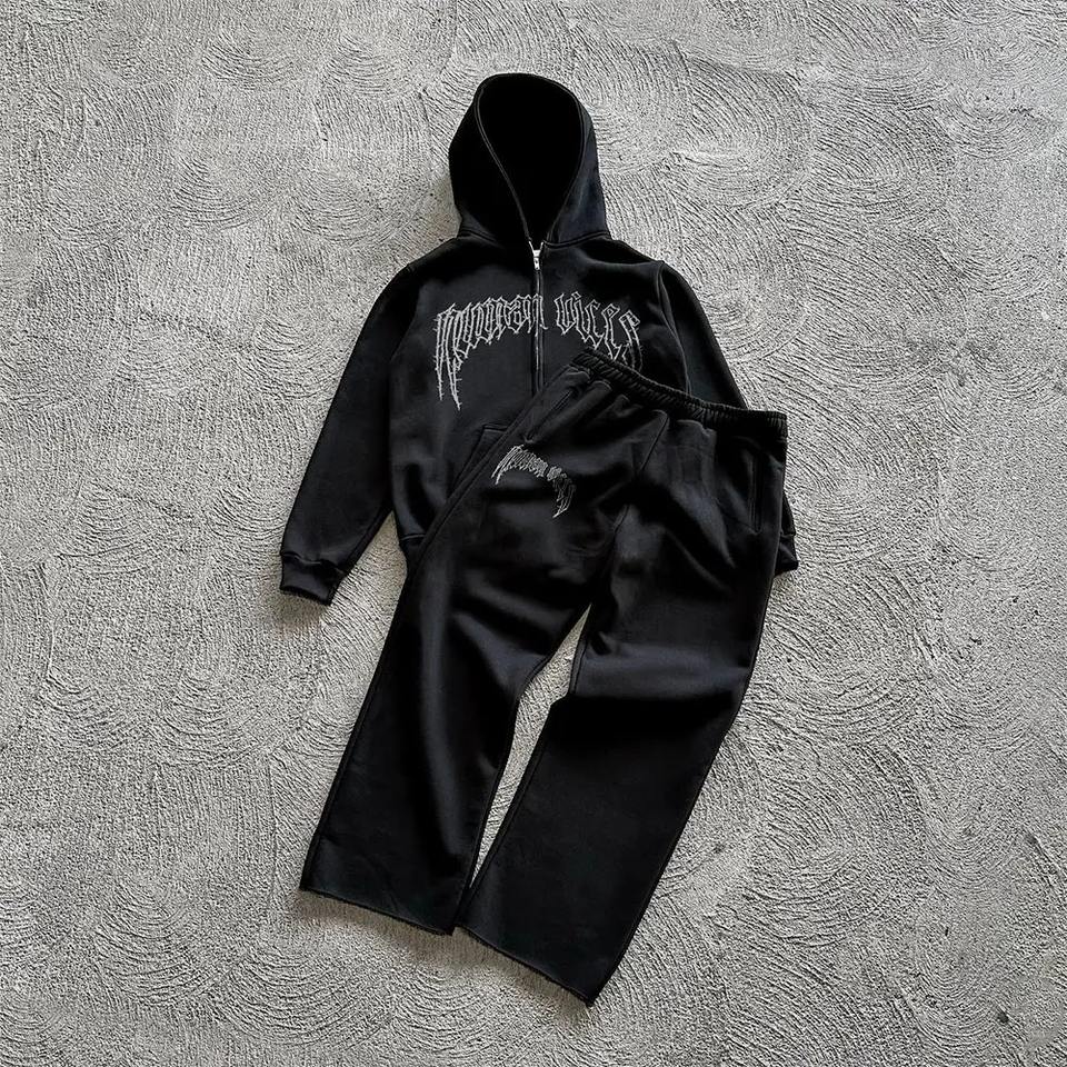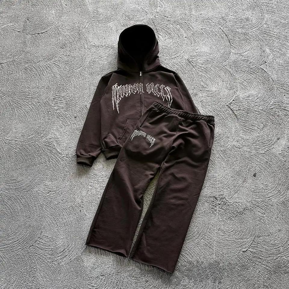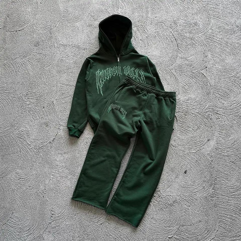 Chándal Vintage con Parche Desgastado para Hombre, Conjunto de Chándal con Capucha y Llamarada, Ropa de Calle, Lavado con Ácido, Sun Fade