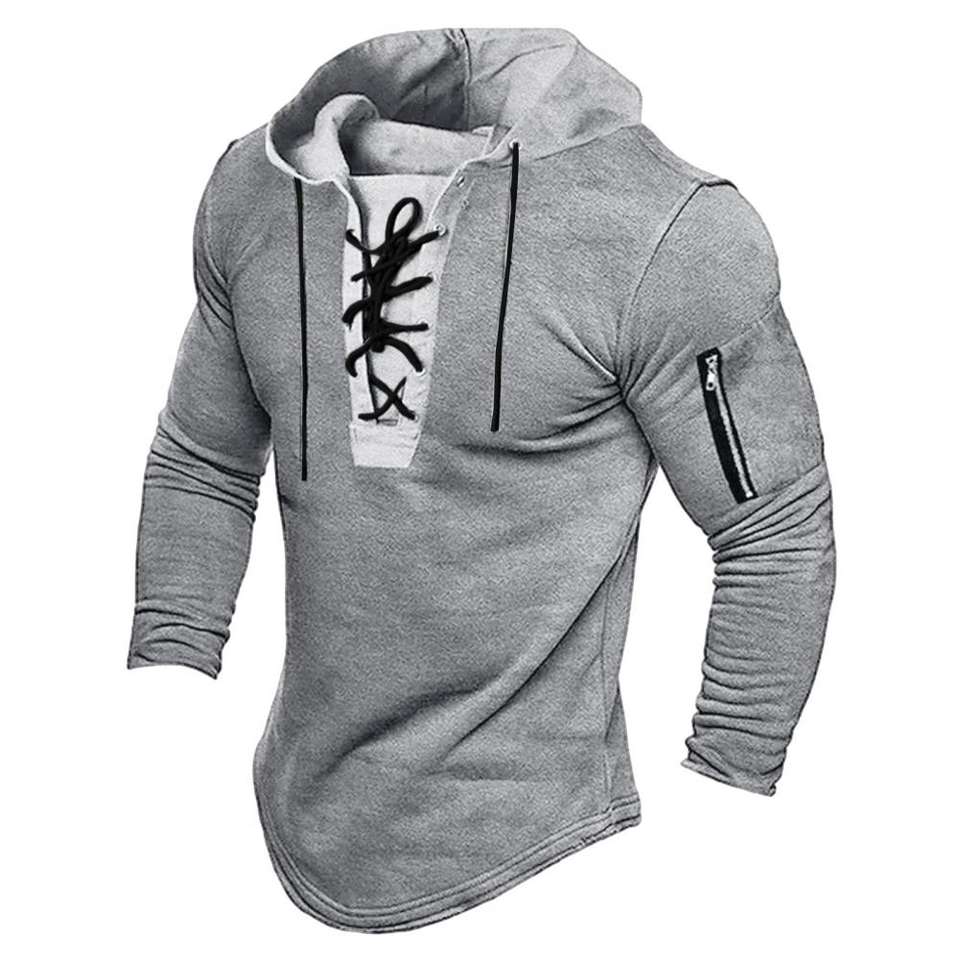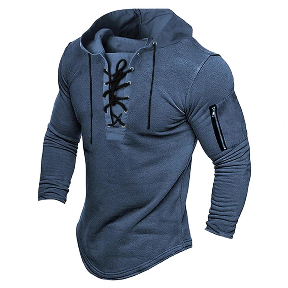 Sudadera Vintage para Hombre, Primavera-Otoño, con Cordones, Estilo Medieval Vikingo, Cierre de Cremallera, Ajustada, Larga hasta la Mitad de la Pierna, Azul, Talla XL