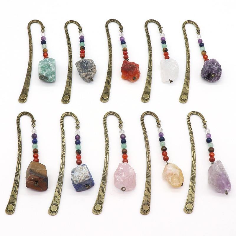 Marcapáginas de Metal Vintage con Cristal de Cuarzo Natural en Bruto, Artesanía con Piedras Curativas, Marcapáginas para Mujeres, Estudiantes, Maestras, Amigas, Regalo