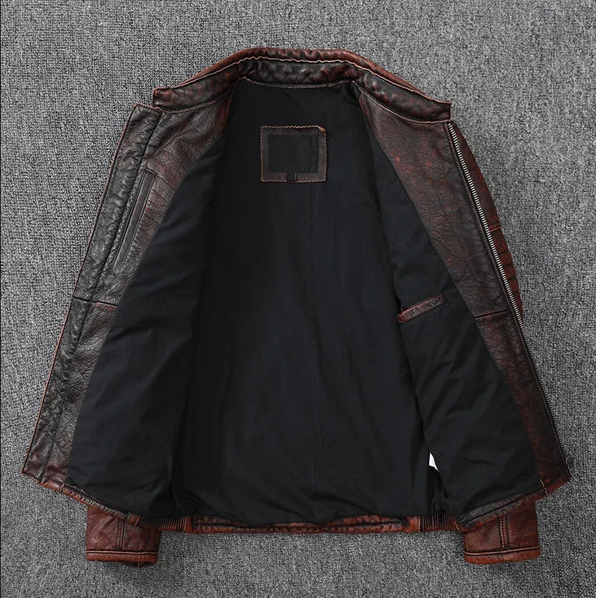 Chaquetas Vintage de lavado de piedra para motocicleta, chaqueta de cuero para hombre, abrigo de cuero de vaca genuino 100%, ropa de motorista para hombre, chaqueta para hombre