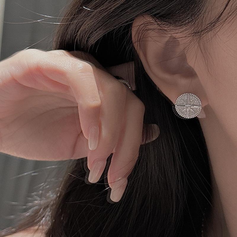 Pendientes de Plata de Ley S925 con Diseño Vintage, Estrella de Seis Puntas Simple y Moderna con Accesorio Redondo Denso para la Oreja