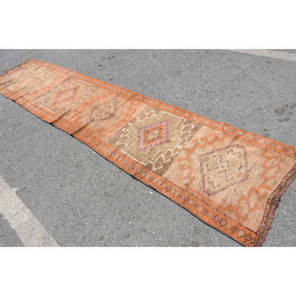 Alfombra de lana Vintage naranja y Beige de 2,6x12,1 pies, diseño de retazos de área grande clásico turco para adolescentes, estilos de pasillo rectangulares de látex