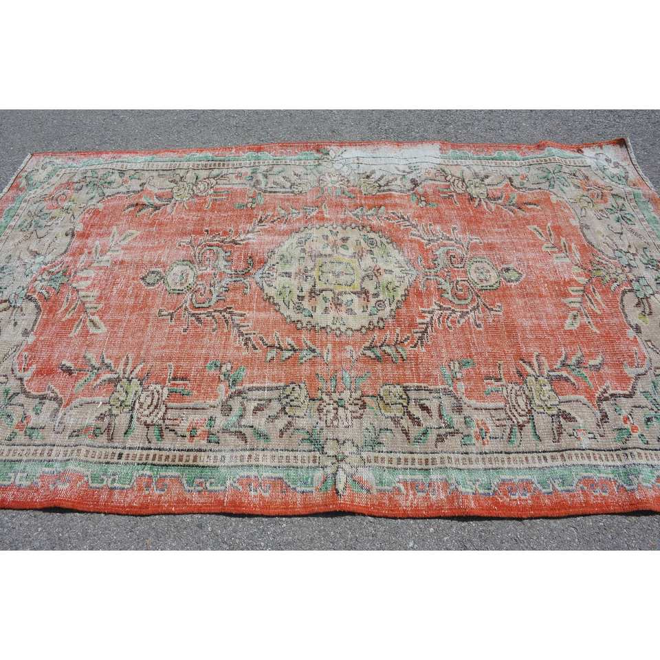 Alfombra de lana Vintage naranja beige 5,4X8,8 pies estilo turco Tabriz con patrón abstracto para entrada o pasillo 9x12 "tamaño"