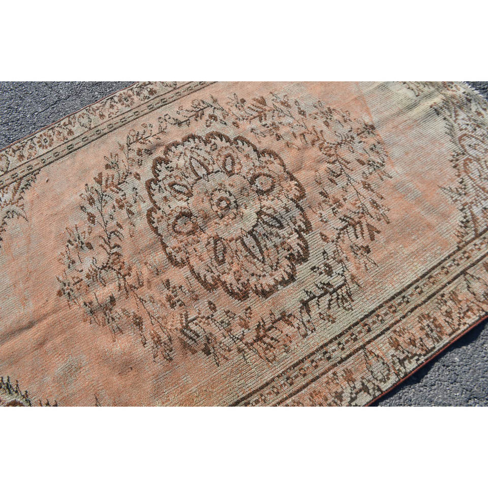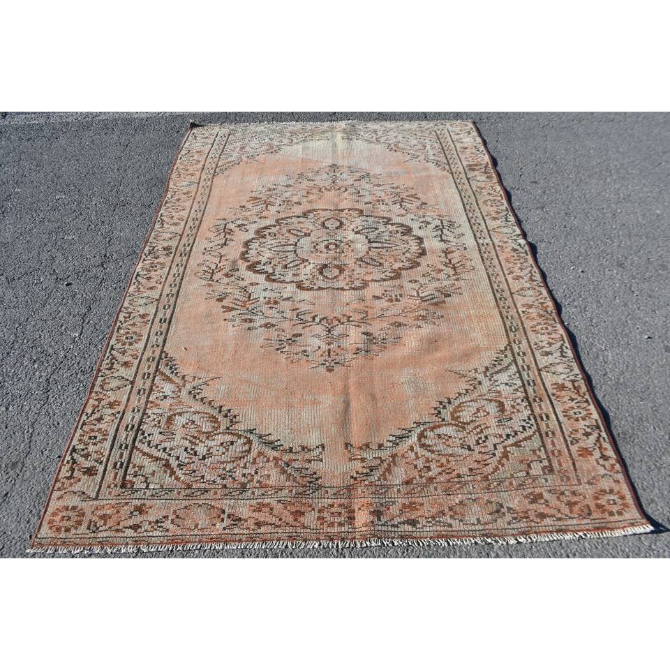 Alfombra de lana Vintage naranja y Beige de 5,3x8 pies, hecha a mano, área grande, estilo Tabriz, patrón de retazos turco con respaldo de látex para adolescentes