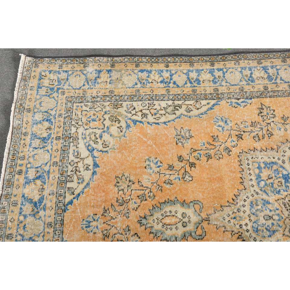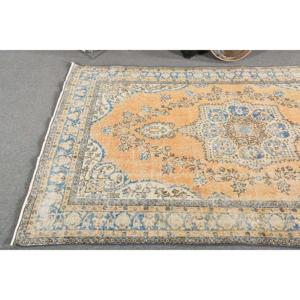 Alfombra de lana azul naranja Vintage 5,6X8,3 pies estilo clásico Tabriz área grande pasillo turco forma Rectangular alfombra de habitación de látex