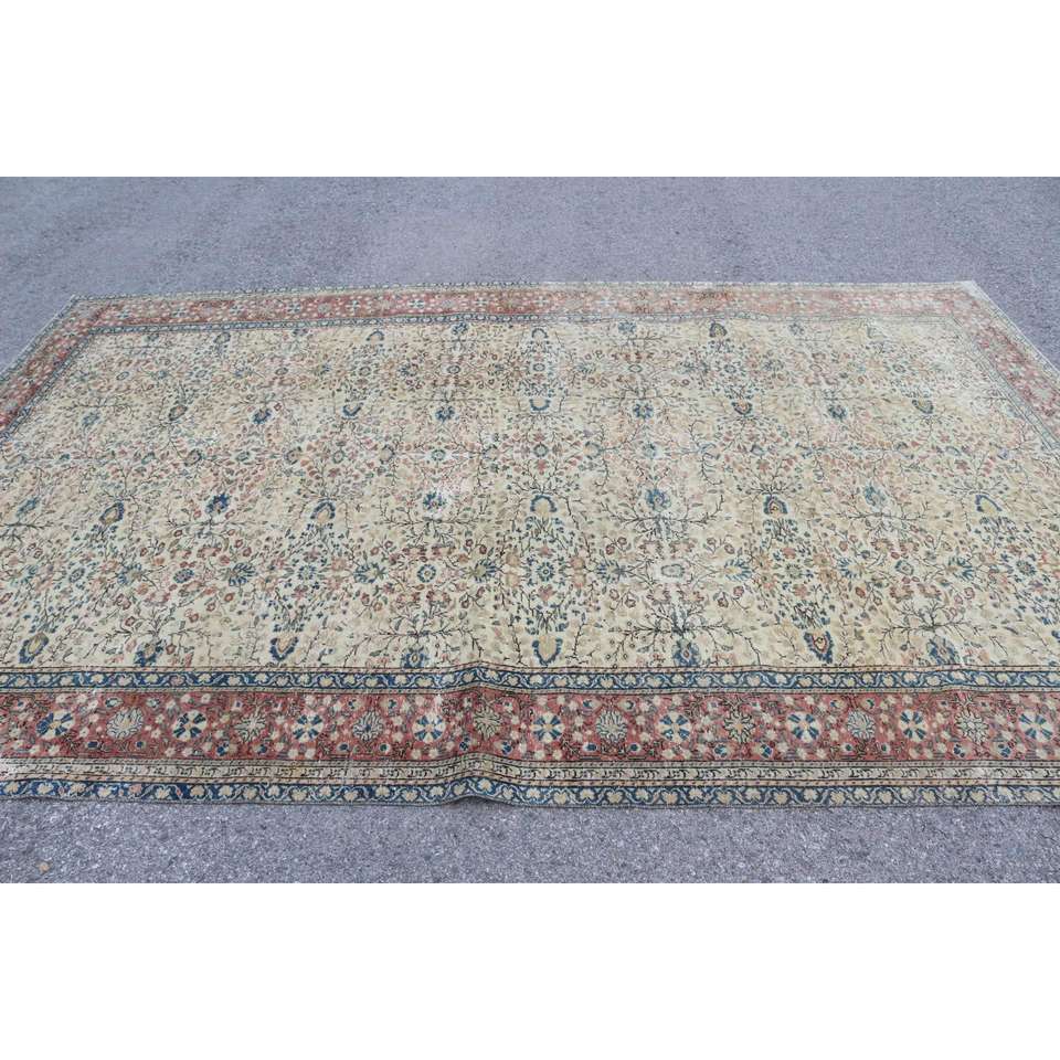 Alfombra Vintage Extra Grande de 7.3x11.5 pies (224x350 cm), Alfombra Turca de Lana con Diseño de Camuflaje Azul