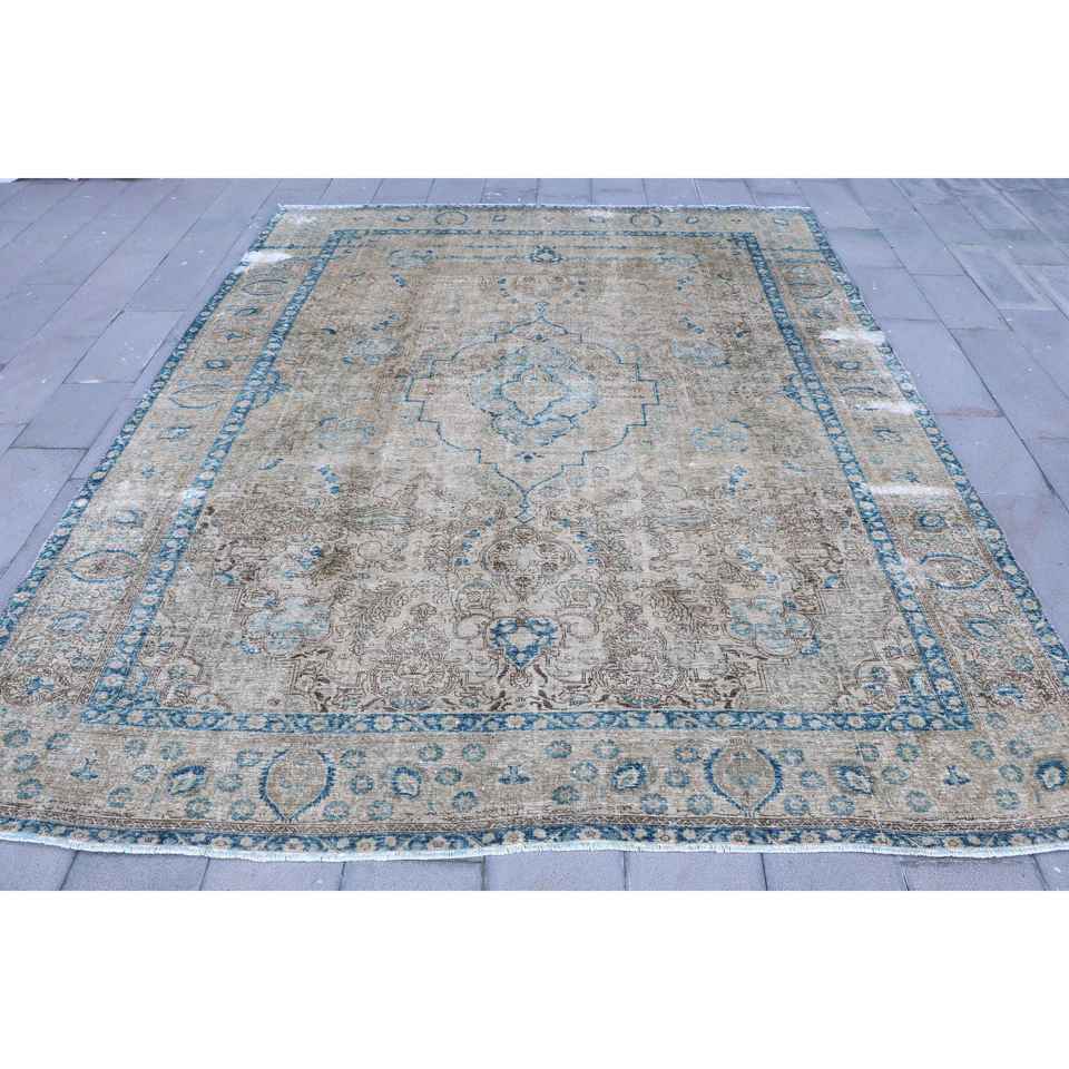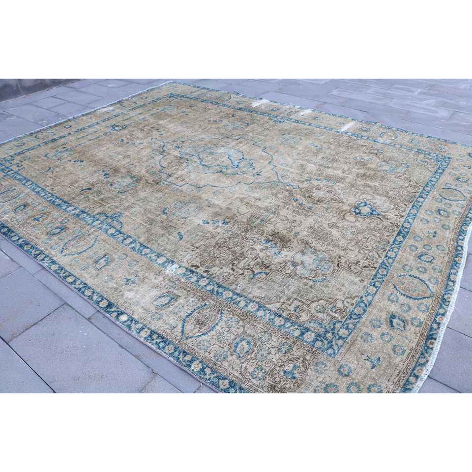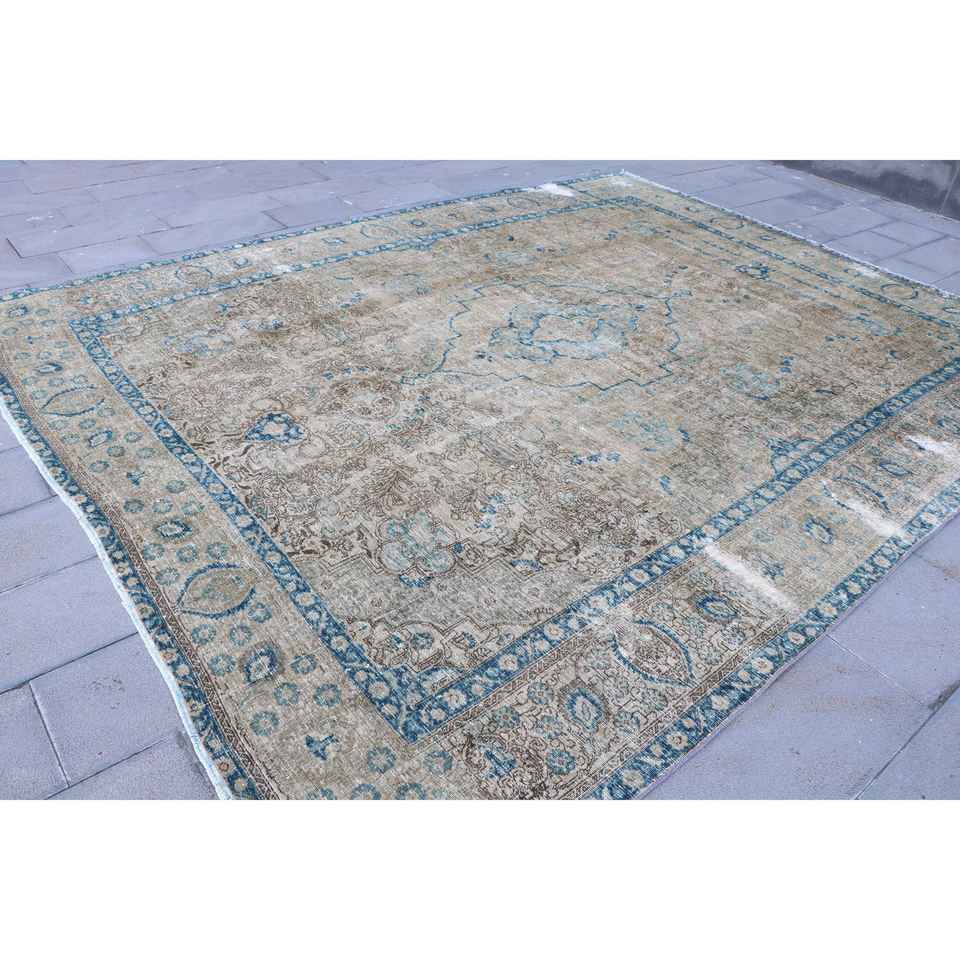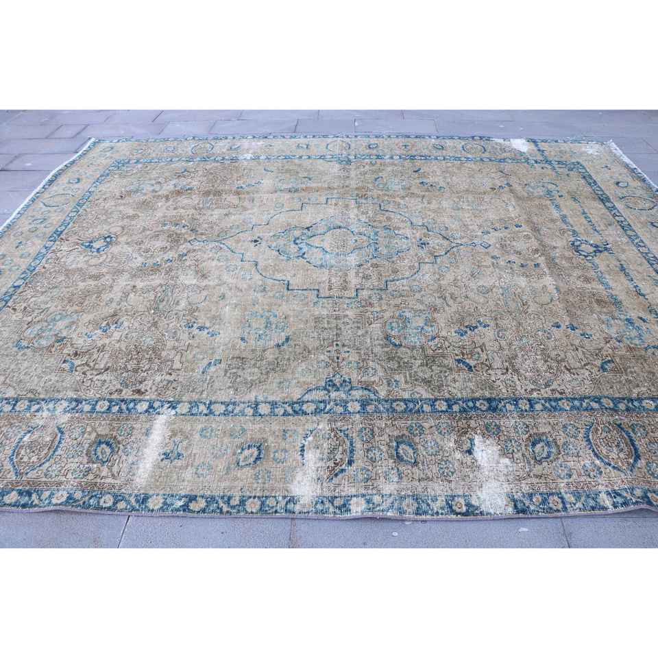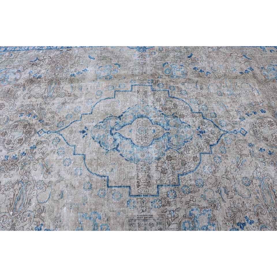 Alfombra Vintage Extra Grande de 9.8x12.1 pies, Alfombra Turca de Lana Azul Sólida