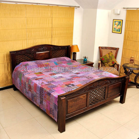 Vintage Patchwork Kantha edredón hecho a mano Patchwork Kantha cama cubierta